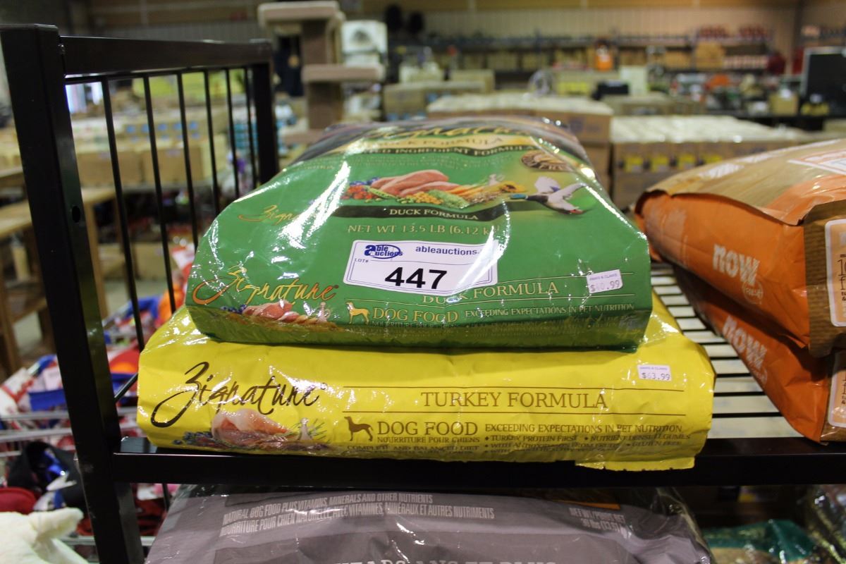 STACK OF SIGNATURE DUCK & TURKEY FORMULA DOG FOOD