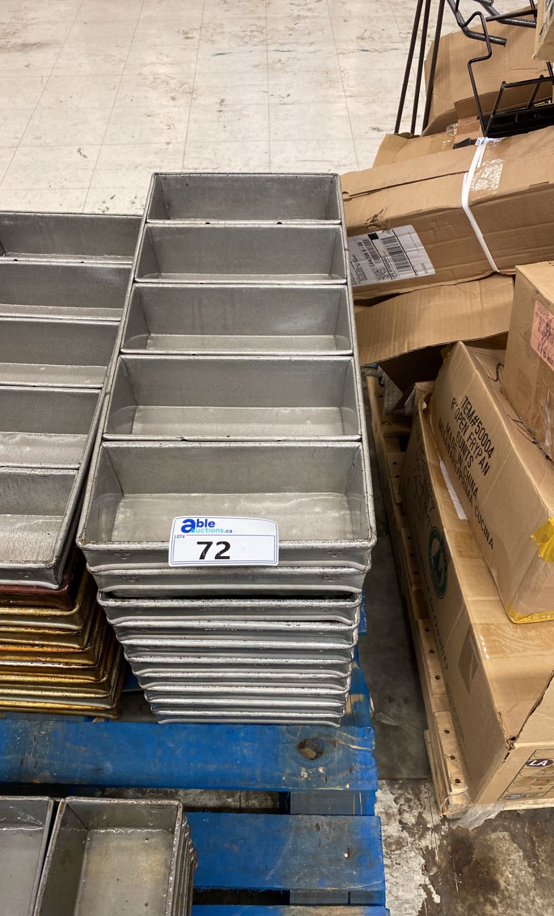 STACK OF STAINLESS STEEL COMMERCIAL 5 SECTION BREAD PANS - APPROX. 10