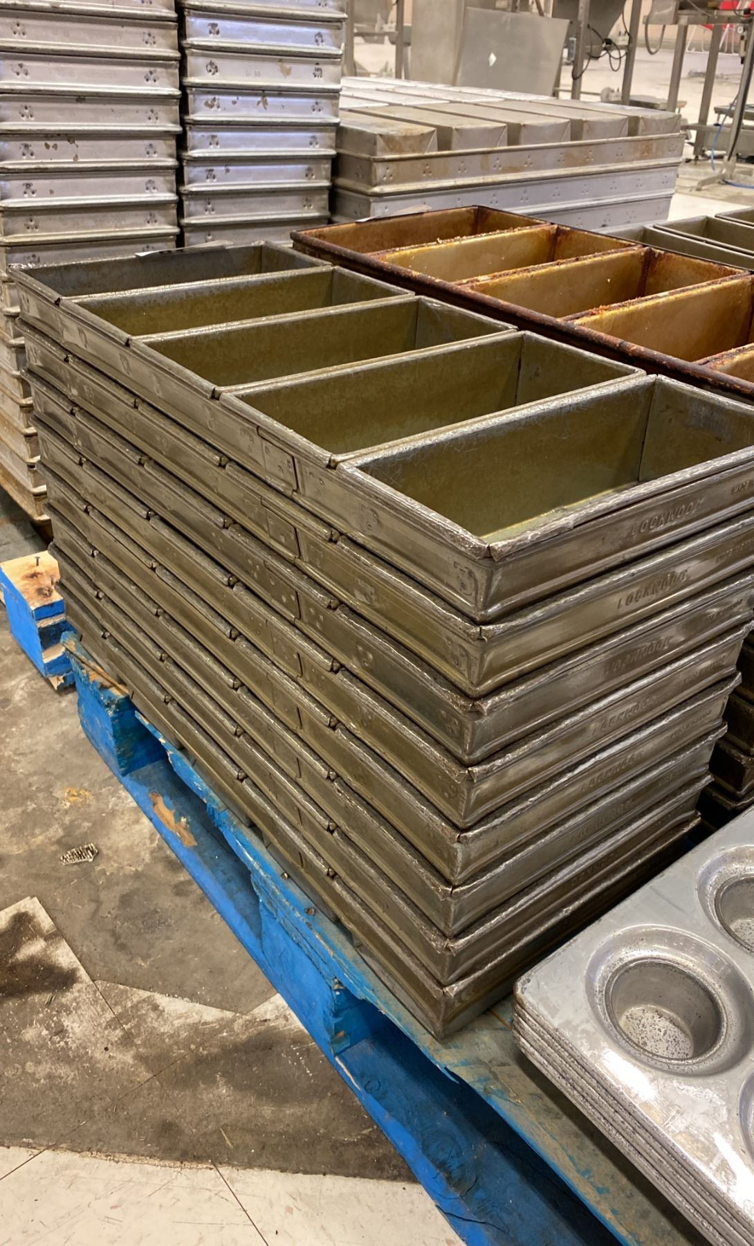 STACK OF STAINLESS STEEL COMMERCIAL 5 SECTION BREAD PANS - APPROX. 8