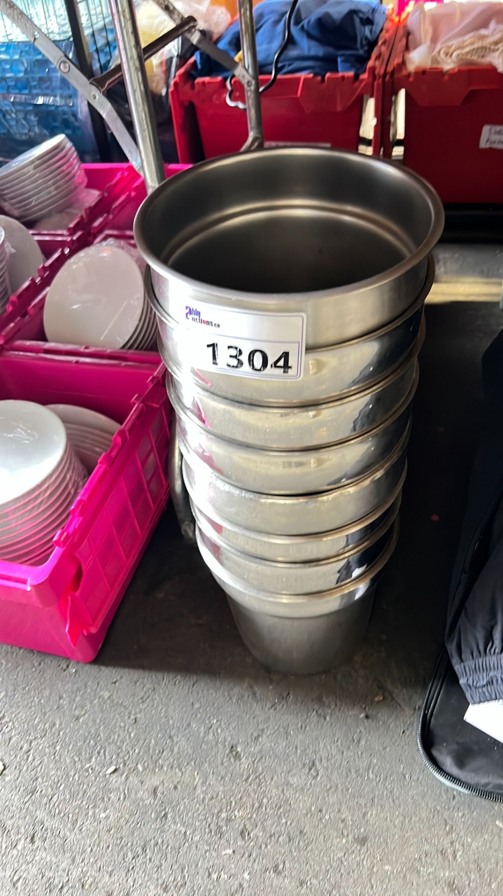 STACK OF STAINLESS STEEL COMMERCIAL ICE BUCKETS