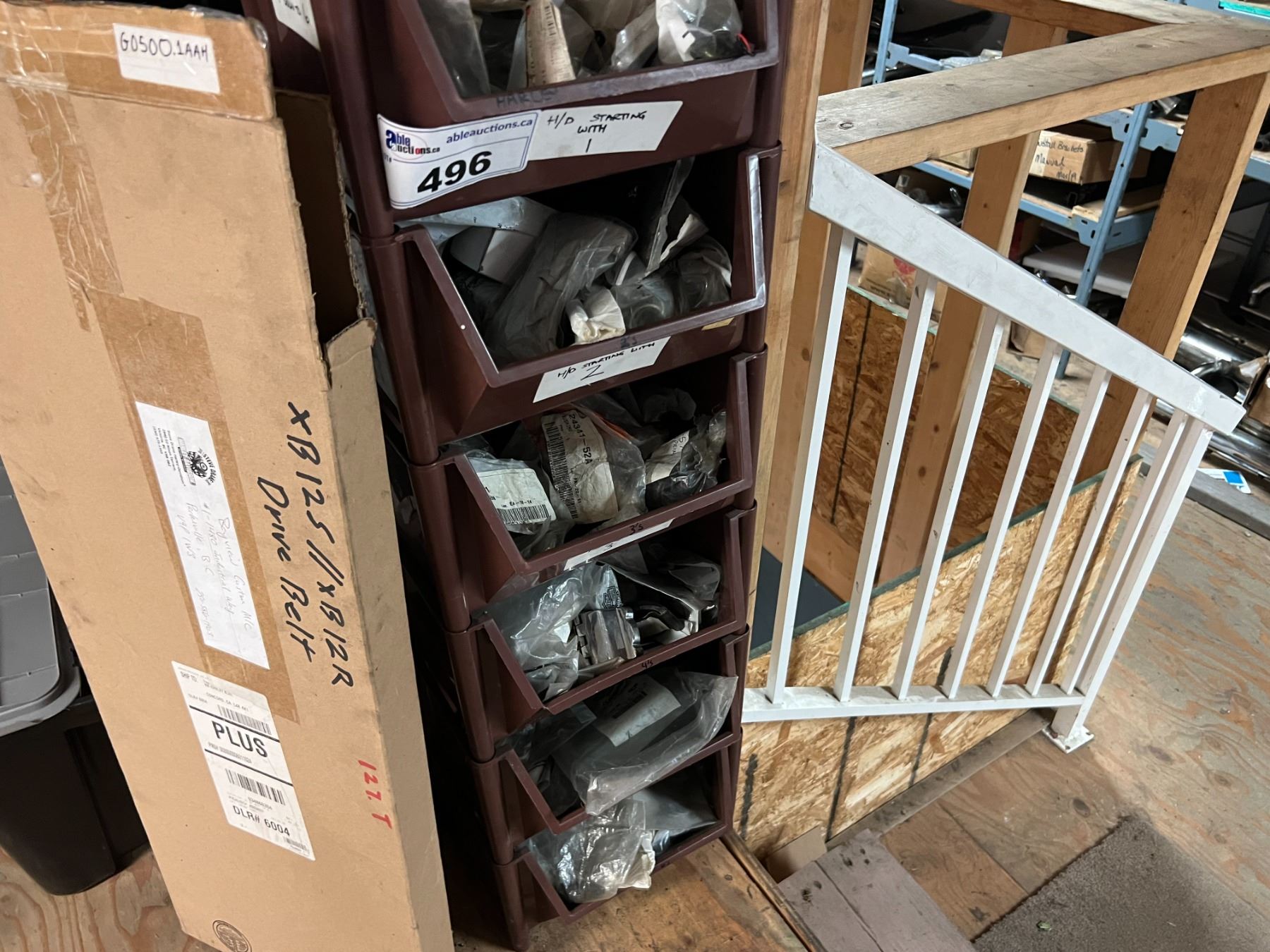 STACKING BINS WITH HARLEY-DAVIDSON FASTENERS, PLATES, SEAT SPRINGS, BRACKETS ETC (BINS INCLUDED) & XB12S/XB12R DRIVE BELT