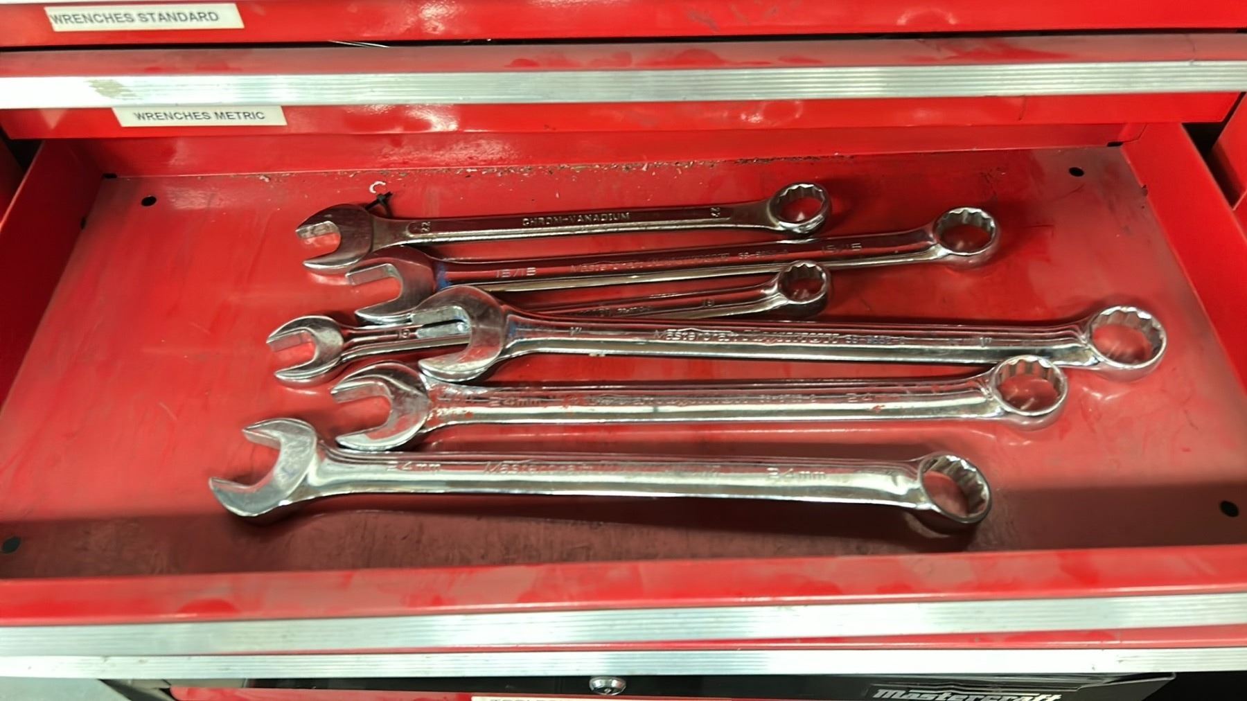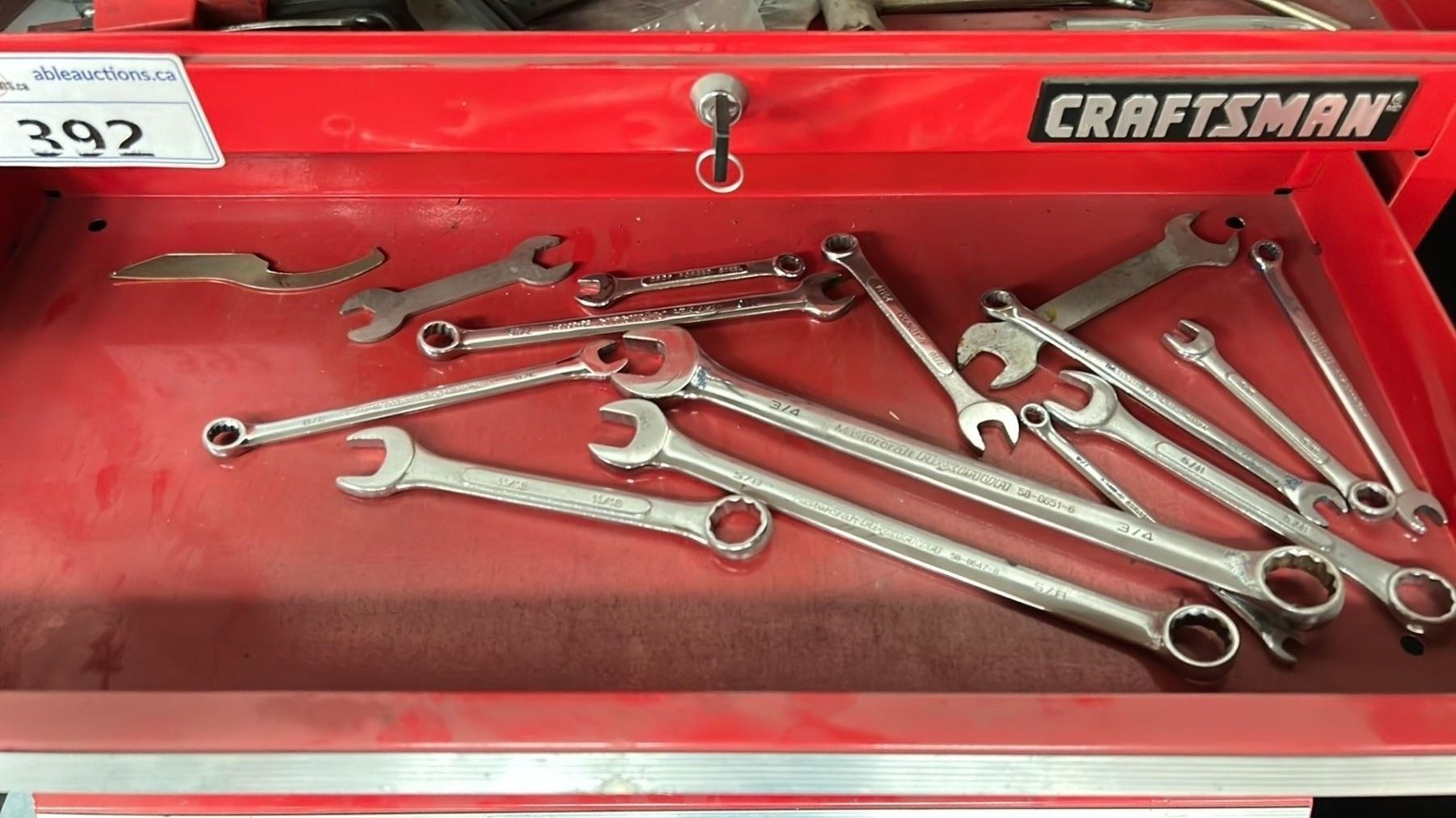 STACKING TOOL BOXES WITH CONTENTS. LG ASST TOOLS, CHISELS, COMBINATION WRENCHES, SCREWDRIVERS,