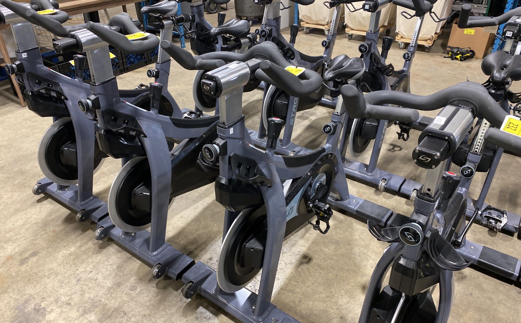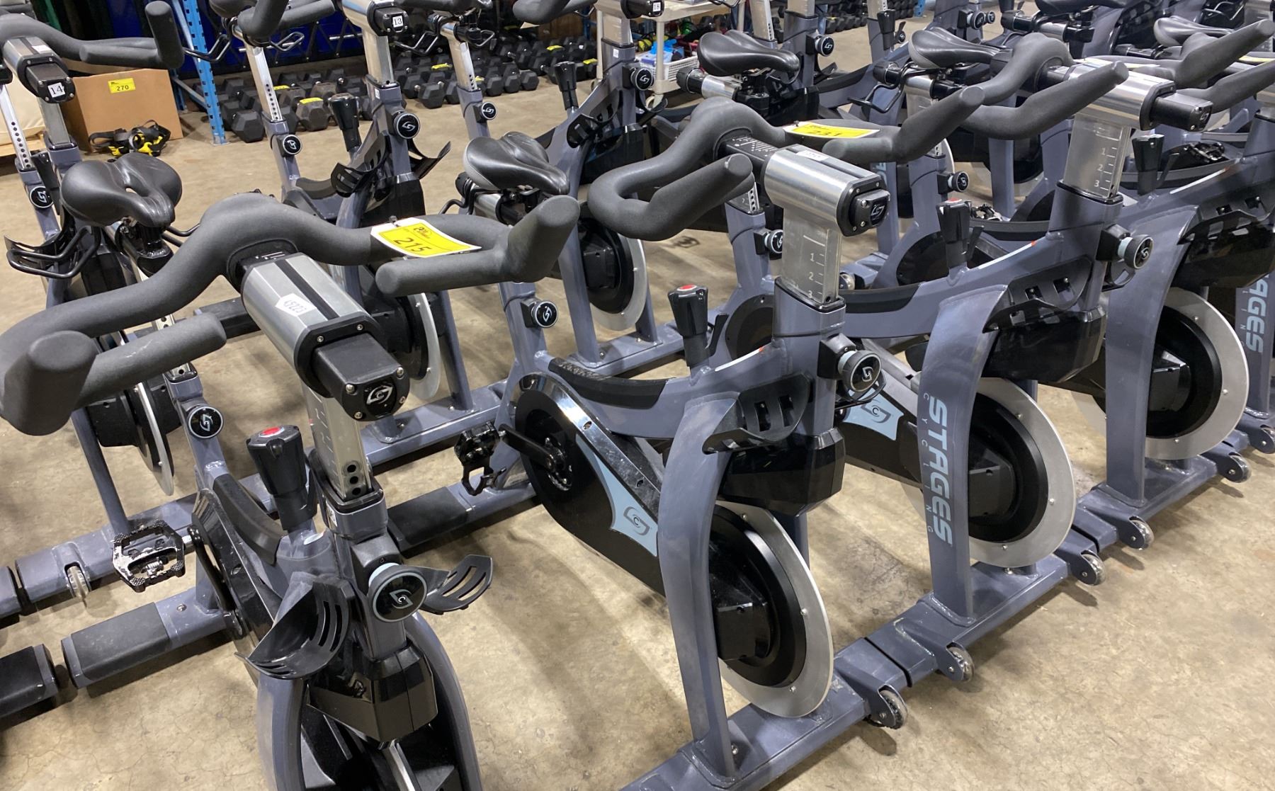 STAGES GREY COMMERCIAL ADJUSTABLE SPINNER BIKE WITH SHOE CLIP/STANDARD PEDALS