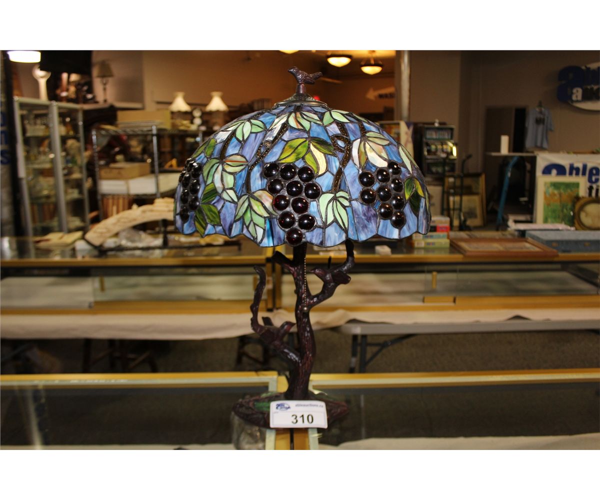 STAIN GLASS TIFFANY STYLE TABLE LAMP WITH BIRDS AND GRAPES