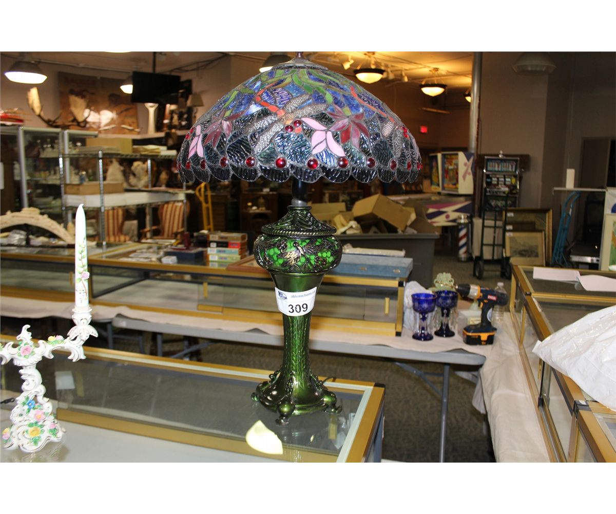 STAIN GLASS TIFFANY STYLE TABLE LAMP WITH DRAGON