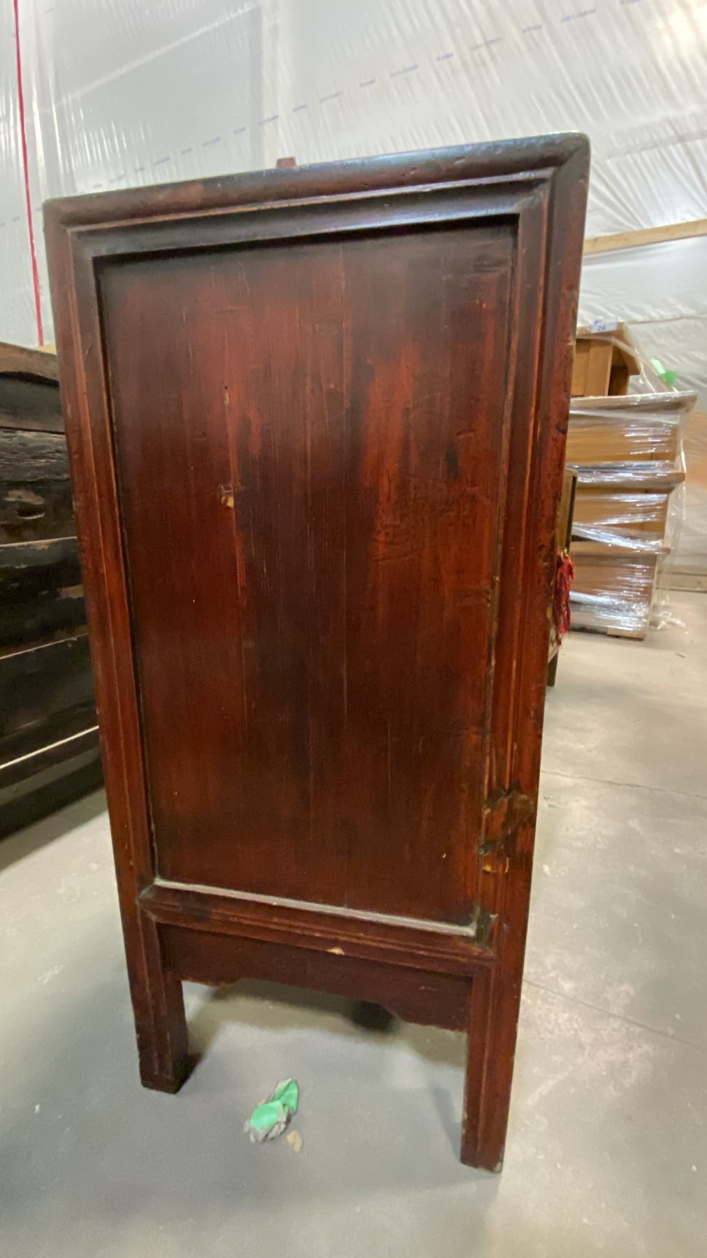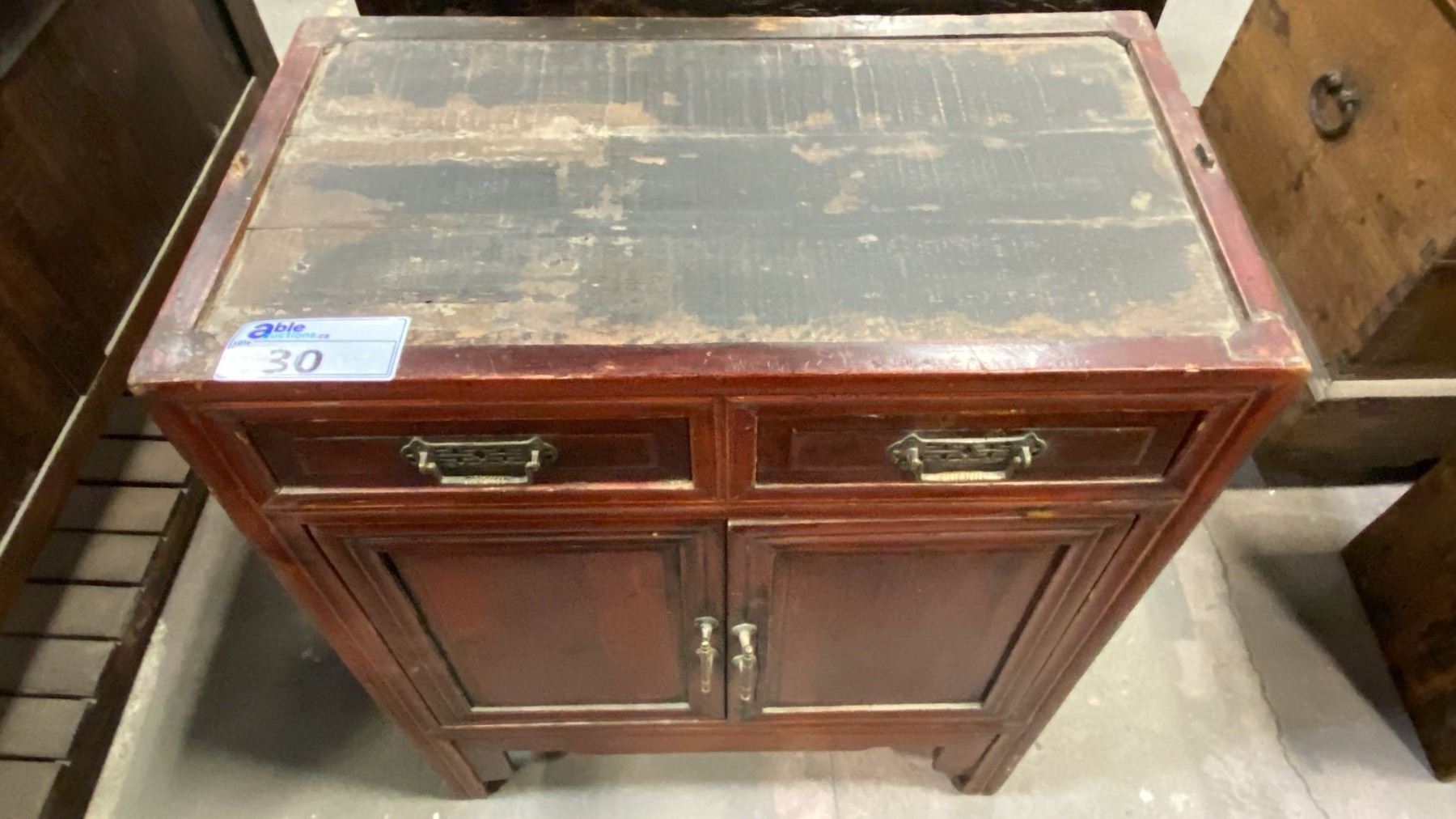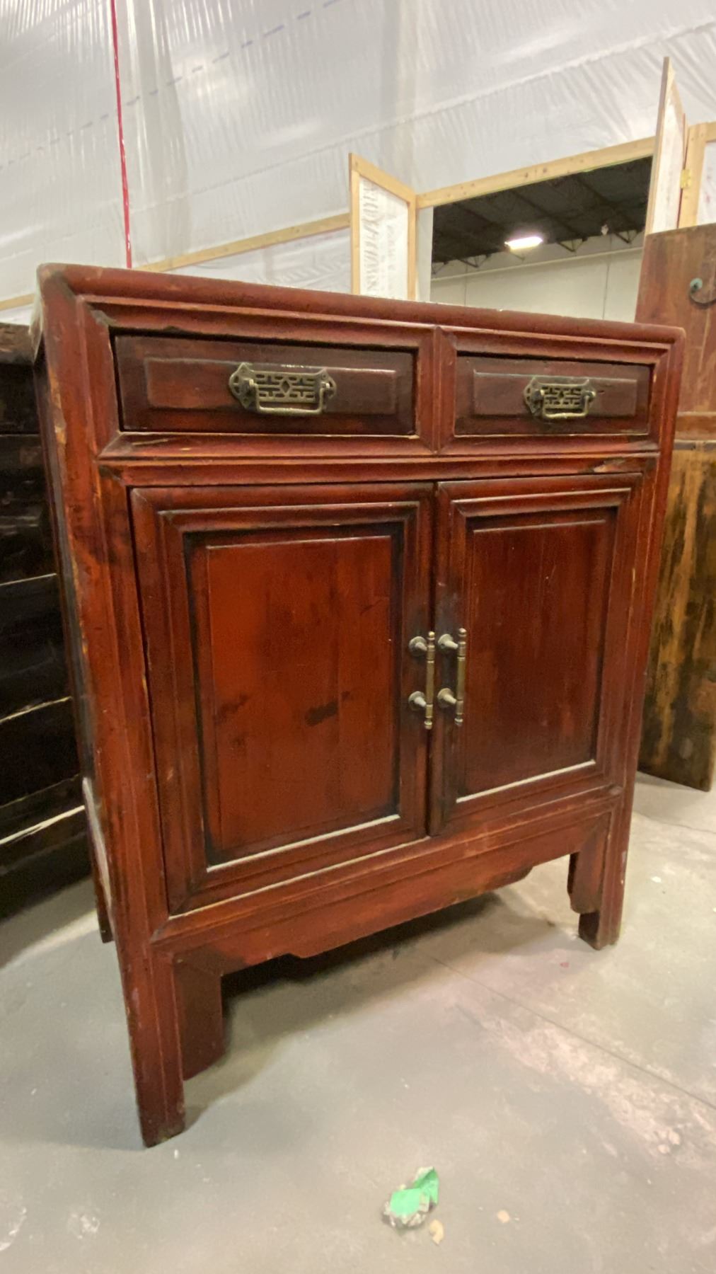STAINED RED SOLID WOOD 2 DRAWER ASIAN CABINET