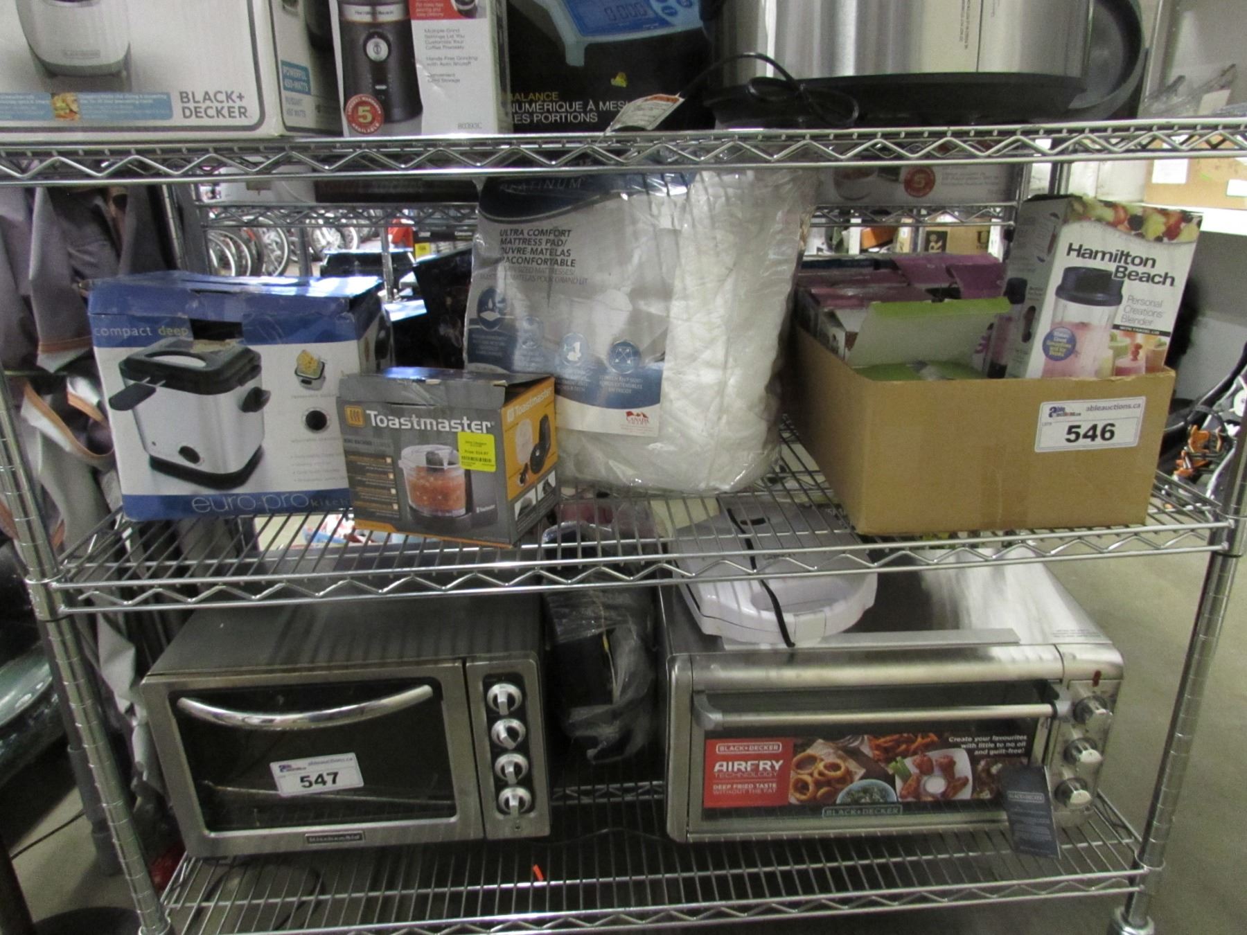 STAINLESS ELECTRIC DEEP FRYER, TOAST MASTER MINI CHOPPER, QUEEN ULTRA COMFORT MATTRESS PAD, HAMILTON BEACH MIXER, GOURMIA COFFEE GRINDERS