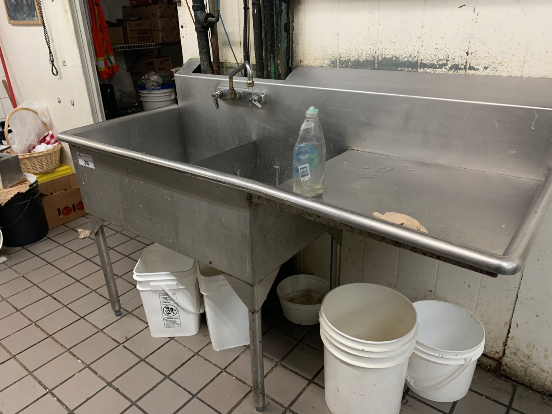 STAINLESS STEEL 2 BAY SINK WITH RUN OFF & FAUCET 28" X 63" 42"