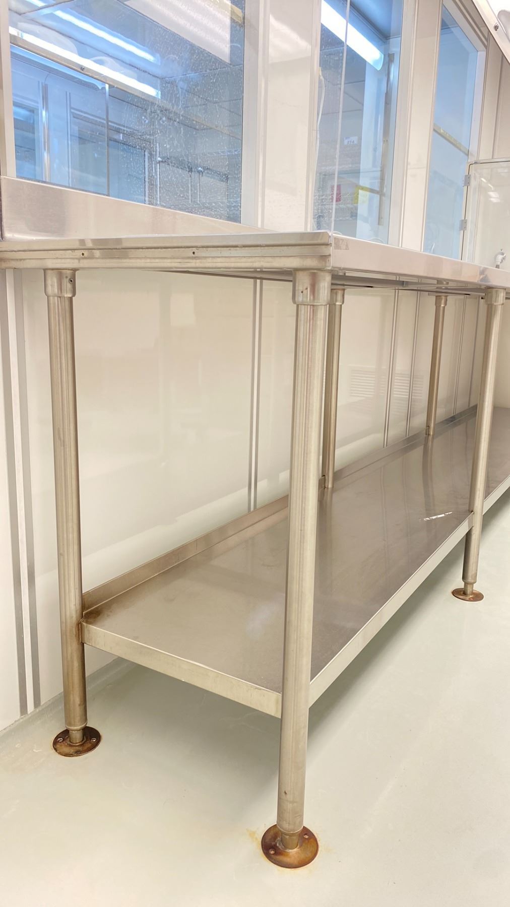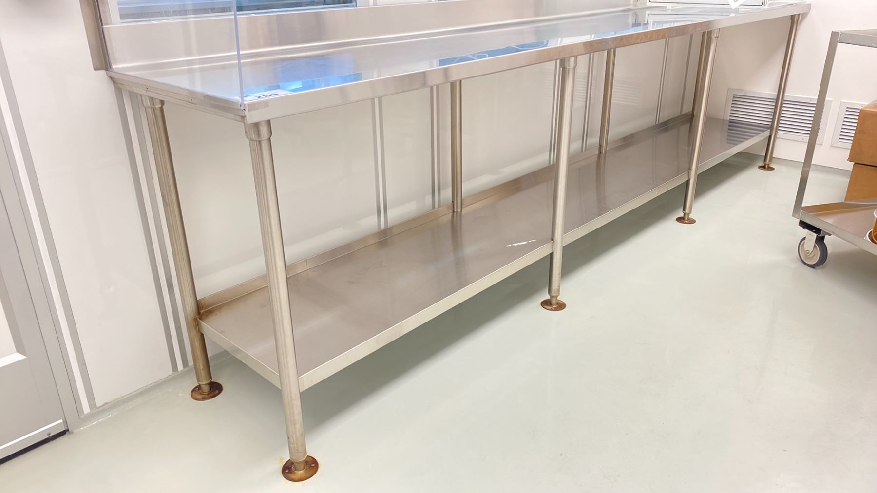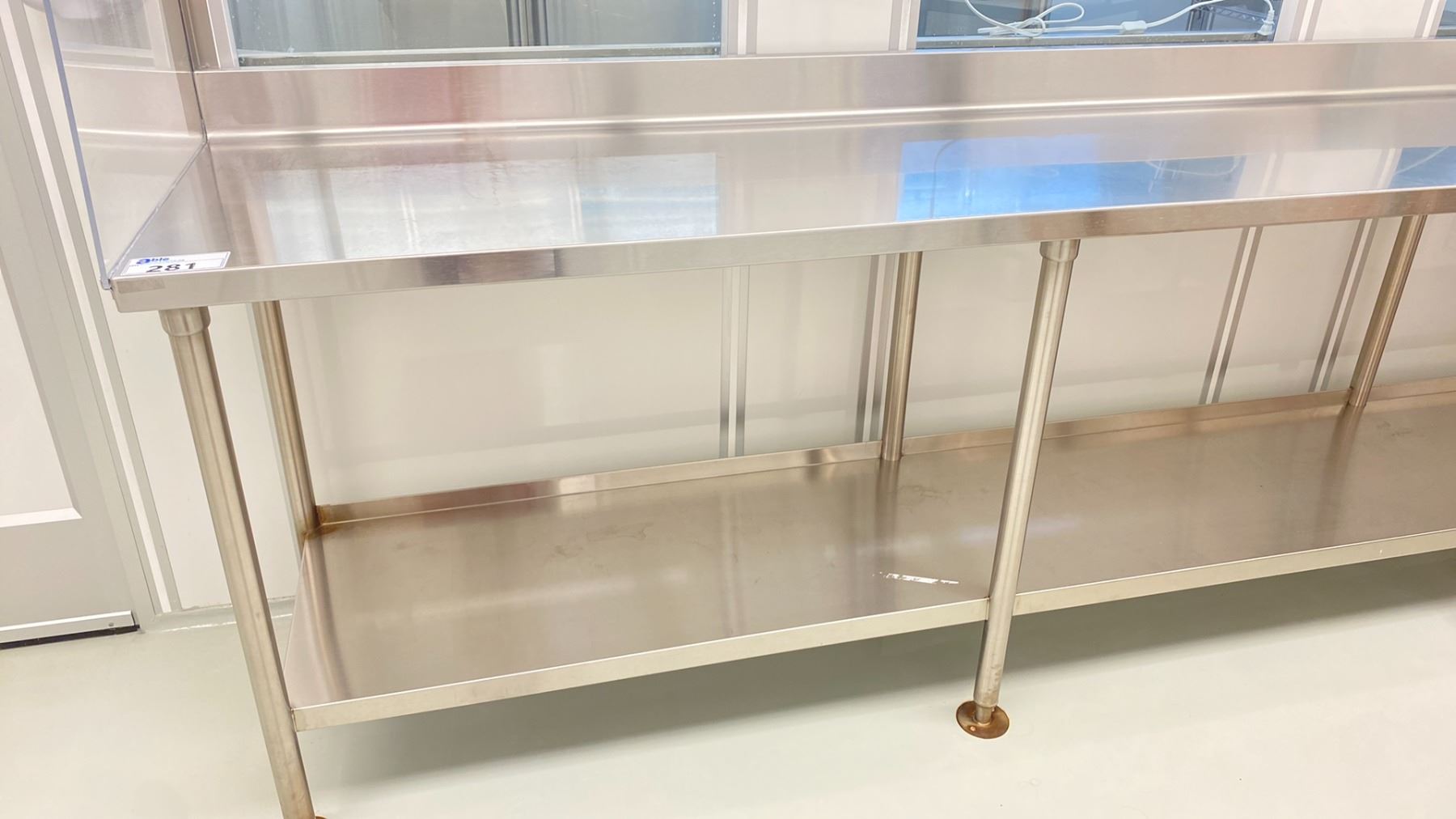 STAINLESS STEEL 2 TIER TABLE WITH BACKSPLASH APPROX 11 X 2 X 3'