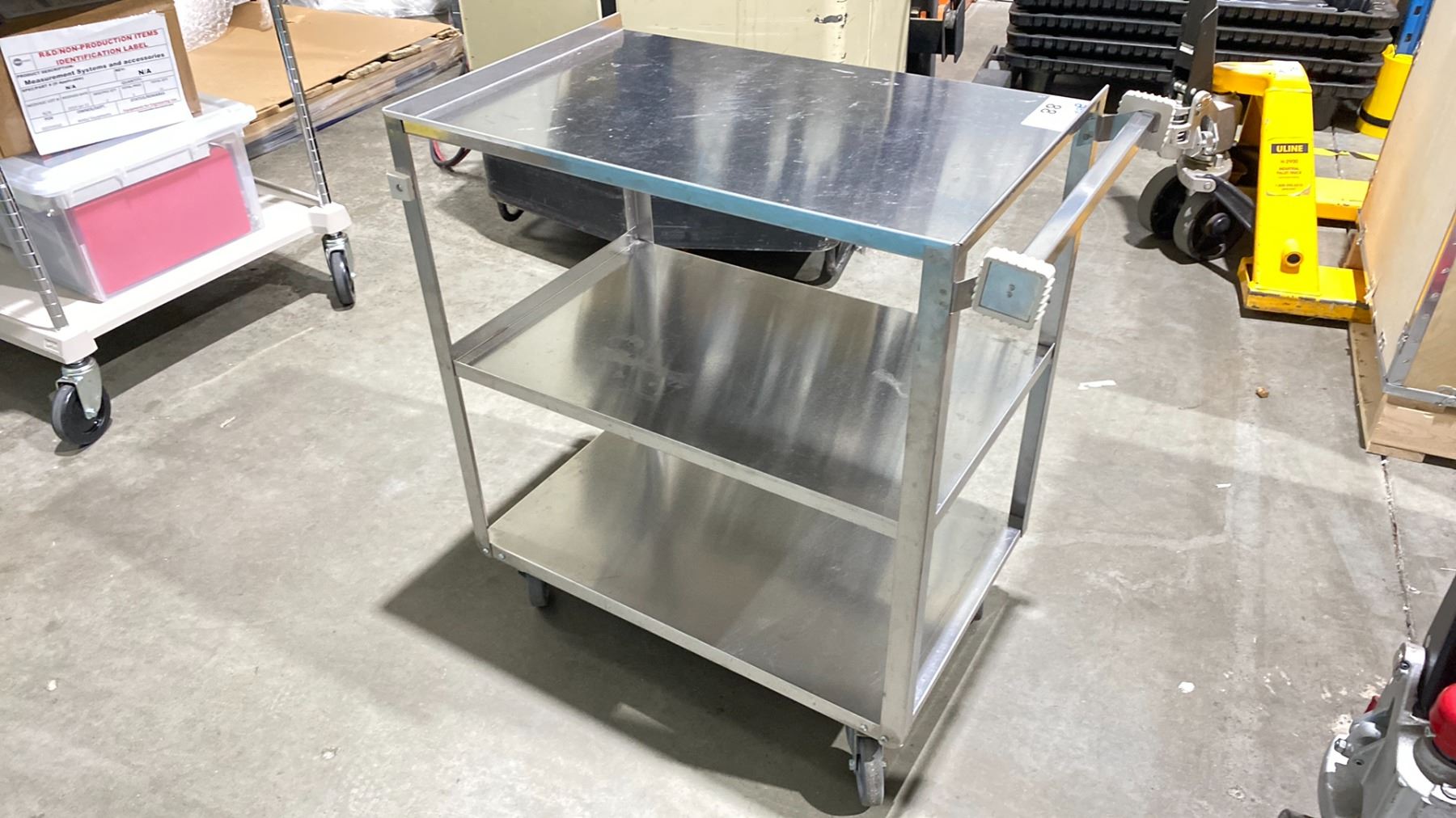STAINLESS STEEL 3 TIER ROLLING CART (CONTENTS NOT INCLUDED)