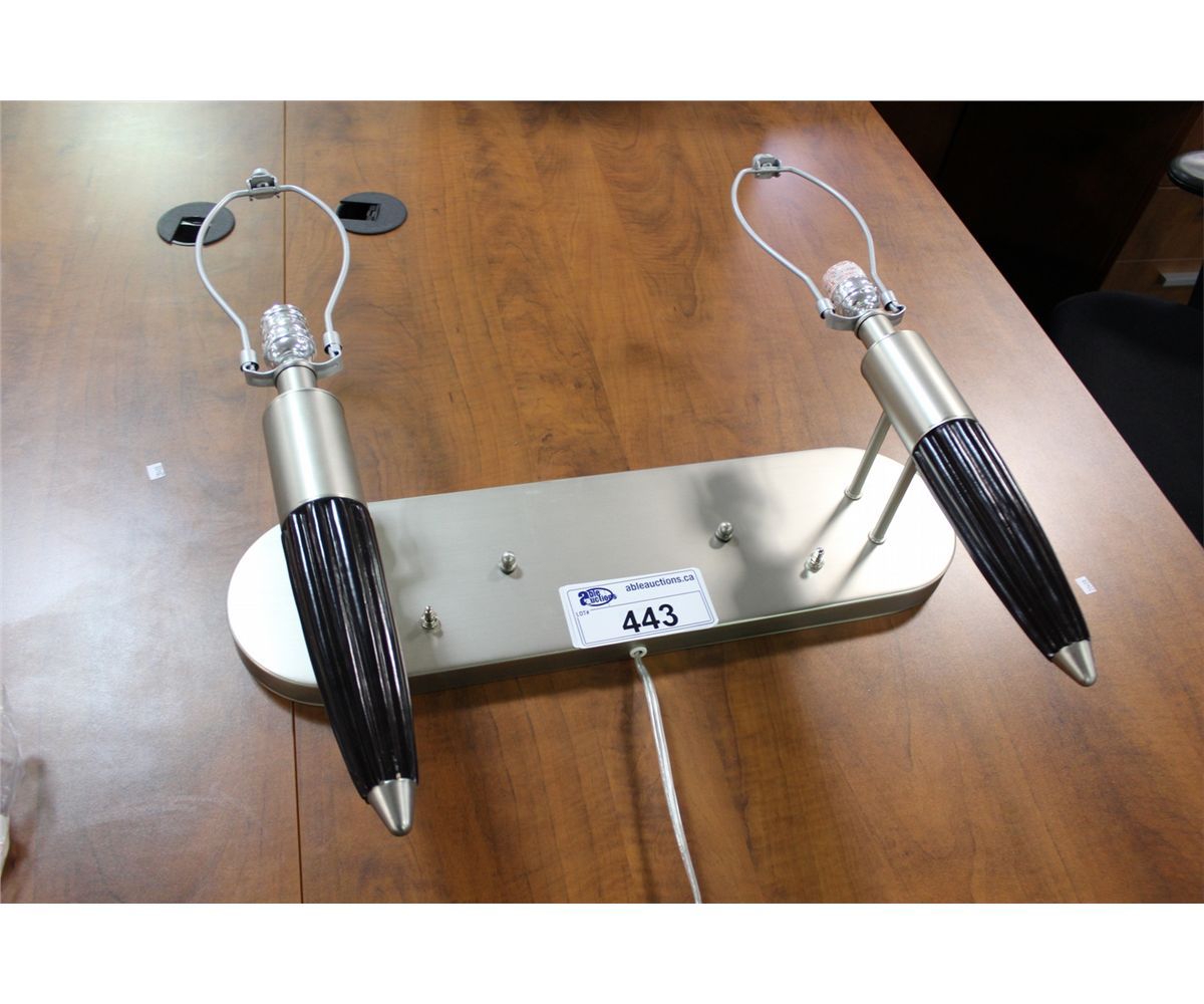 STAINLESS STEEL AND DARK MAHOGANY WALL SCONCE