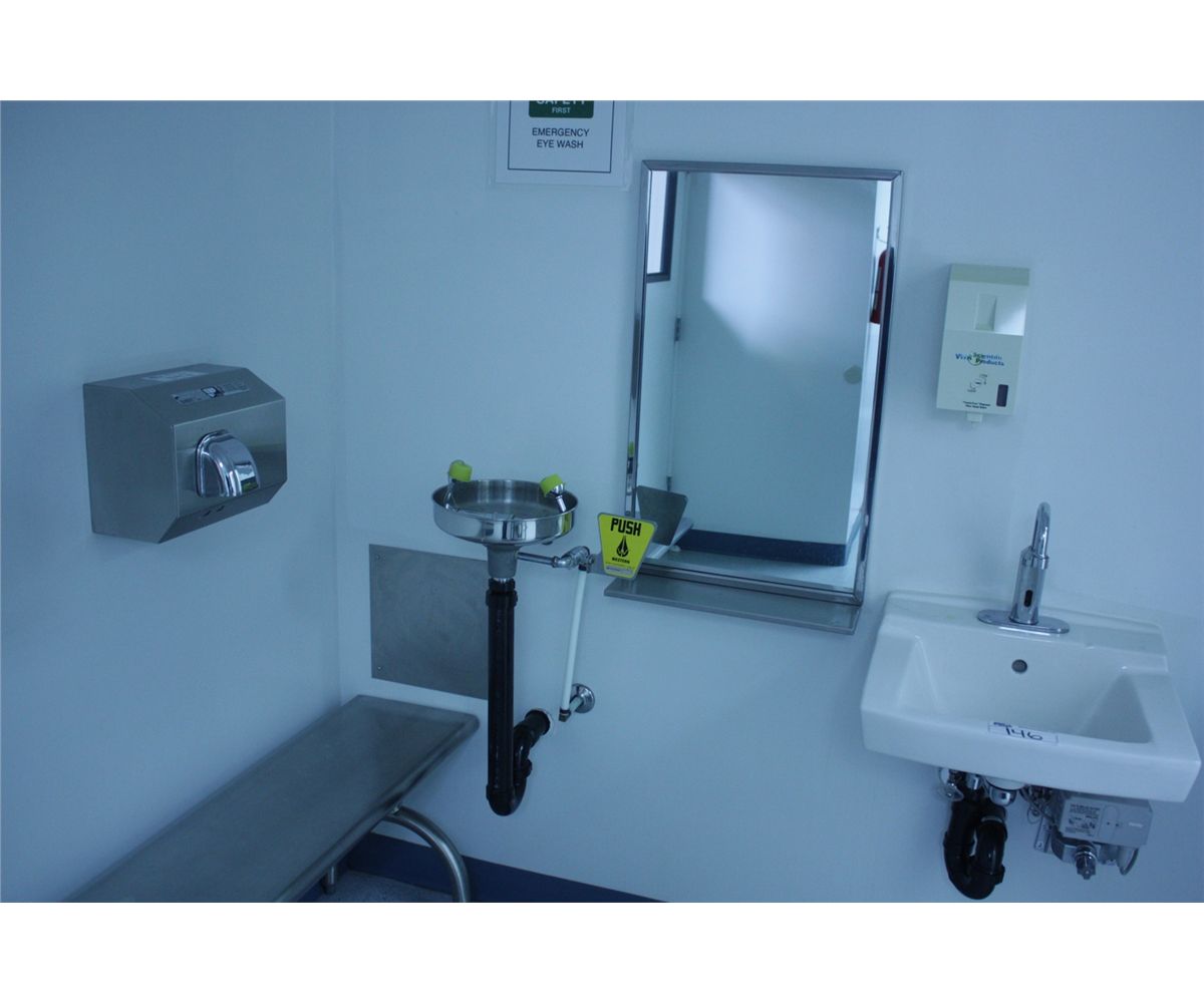 STAINLESS STEEL BENCH, MIRROR AND EYEWASH STATION