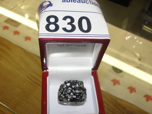 STAINLESS STEEL BIKER SKULL RING WITH PERIDOT EYES