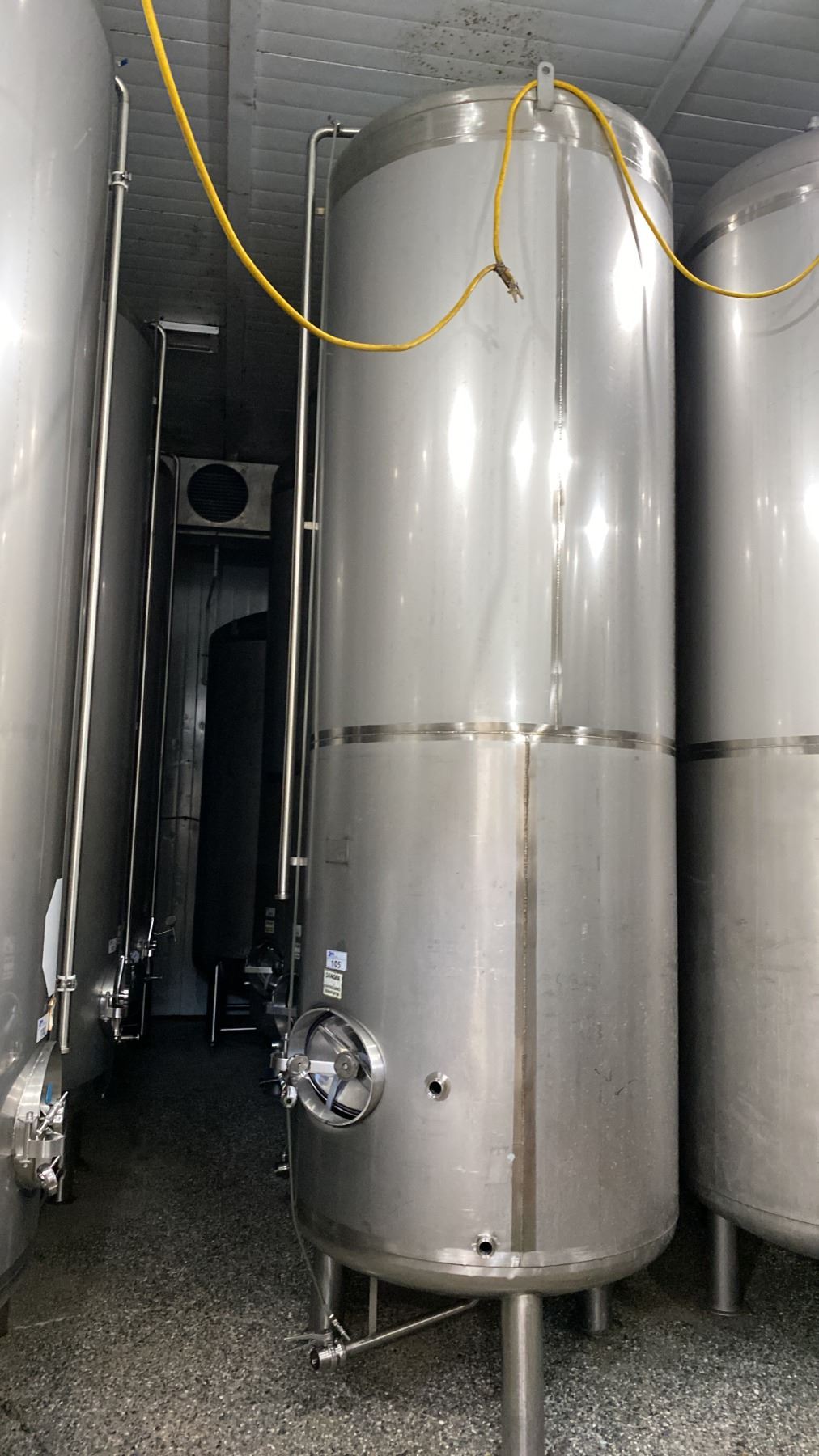 STAINLESS STEEL BRITE TANK MODEL-20 HECTOLITER - APPROX 4'D X 13'H FEET *BUYER WILL REQUIRE ANY TOOLS/EQUIPMENT AND HELP NECESSARY FOR REMOVAL* *REQUIRES HIAB/CRANE FOR REMOVAL*