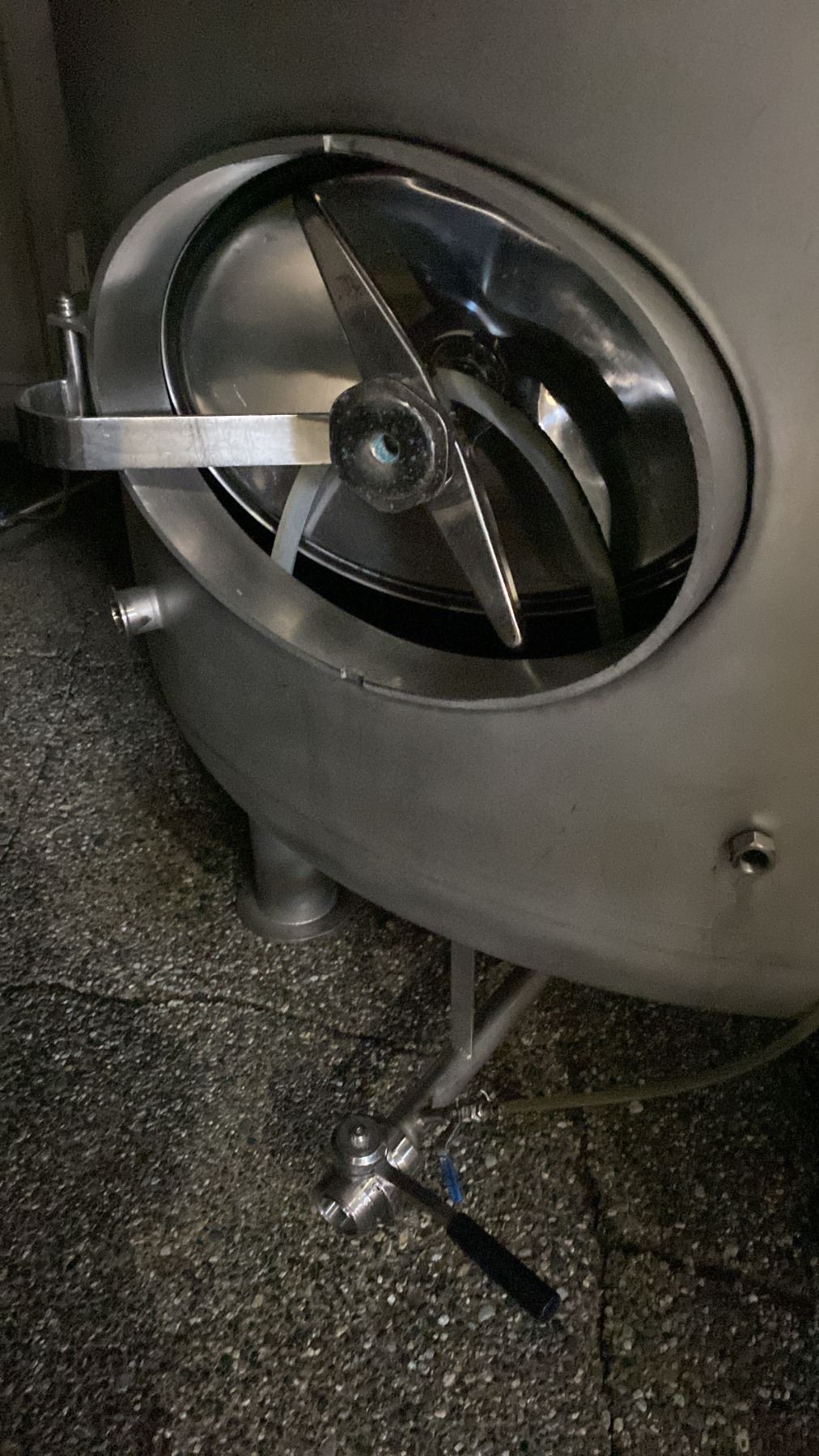 STAINLESS STEEL BRITE TANK MODEL-20 HECTOLITER - APPROX 4'D X 13'H FEET *BUYER WILL REQUIRE ANY TOOLS/EQUIPMENT AND HELP NECESSARY FOR REMOVAL* *REQUIRES HIAB/CRANE FOR REMOVAL*