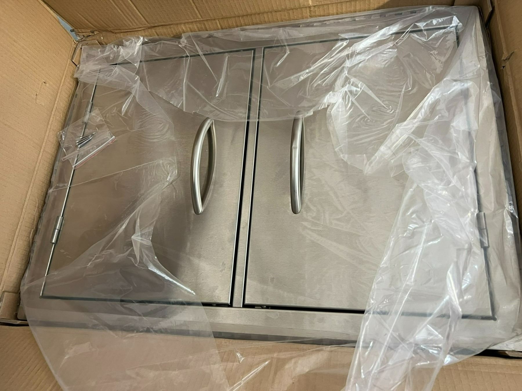 STAINLESS STEEL BUILT-IN CABINET (29" X 20") WITH 2 PULL OUT TRAYS & PULL OUT GARBAGE