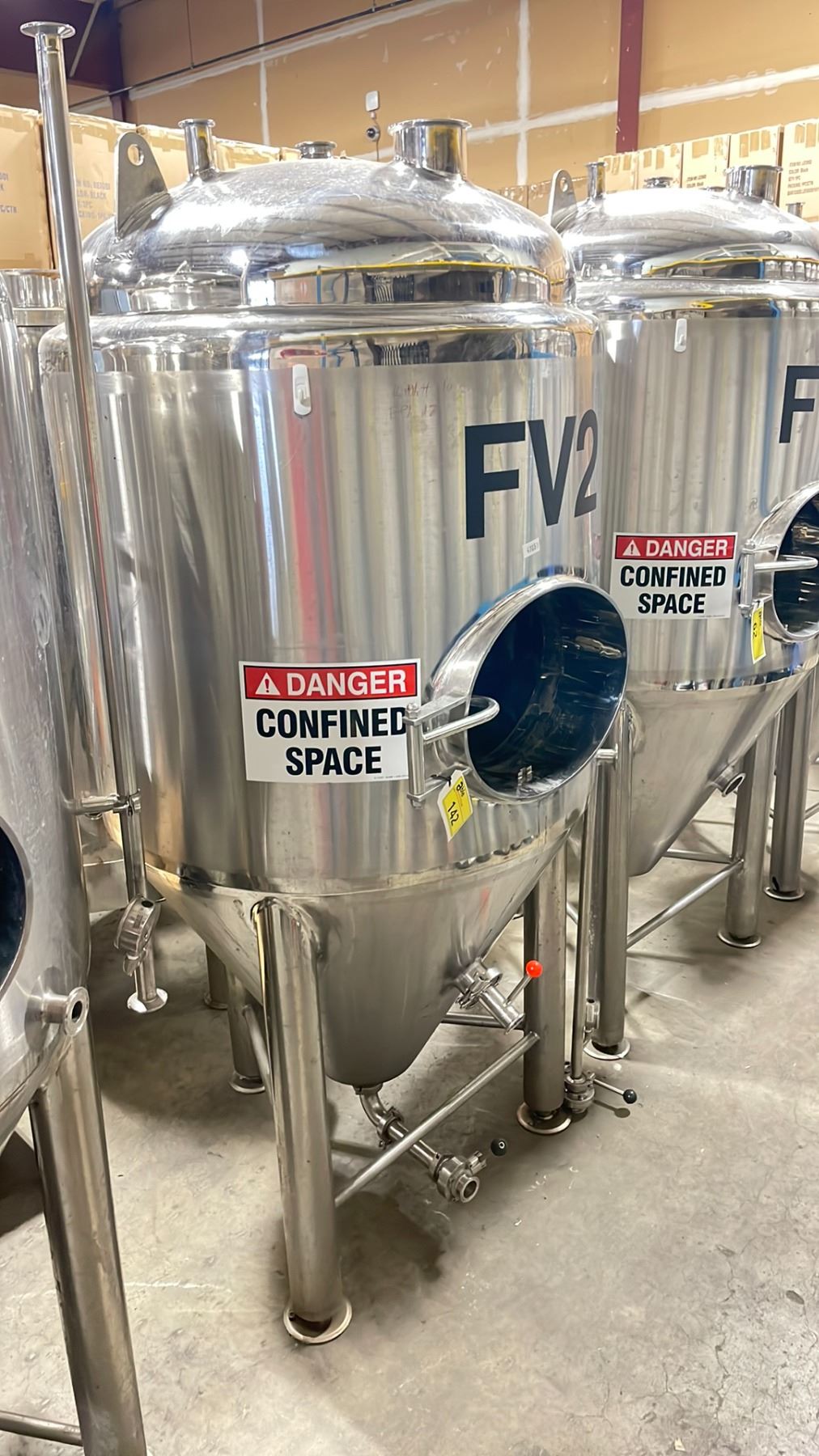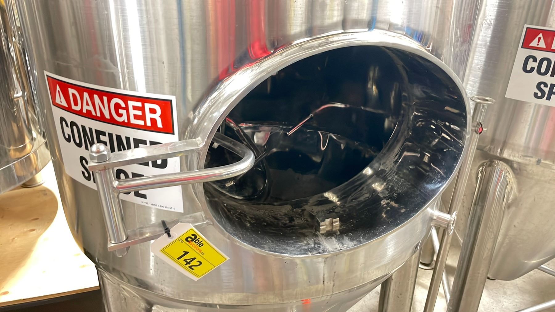 STAINLESS STEEL JACKETED CONE BOTTOM COMMERCIAL BREWERY FERMENTATION TANK W/FRONT ACCESS ON TRI-LEGS