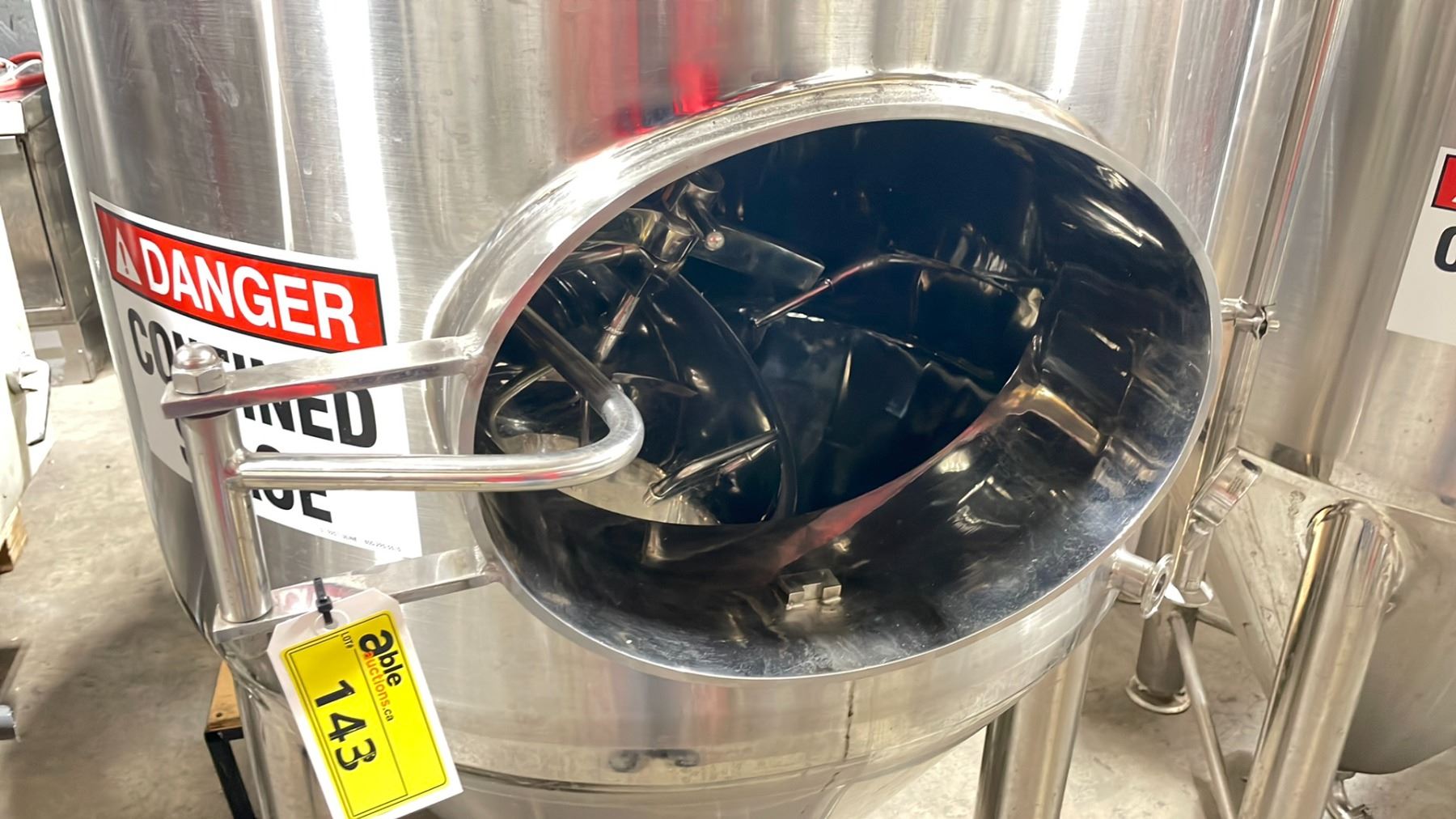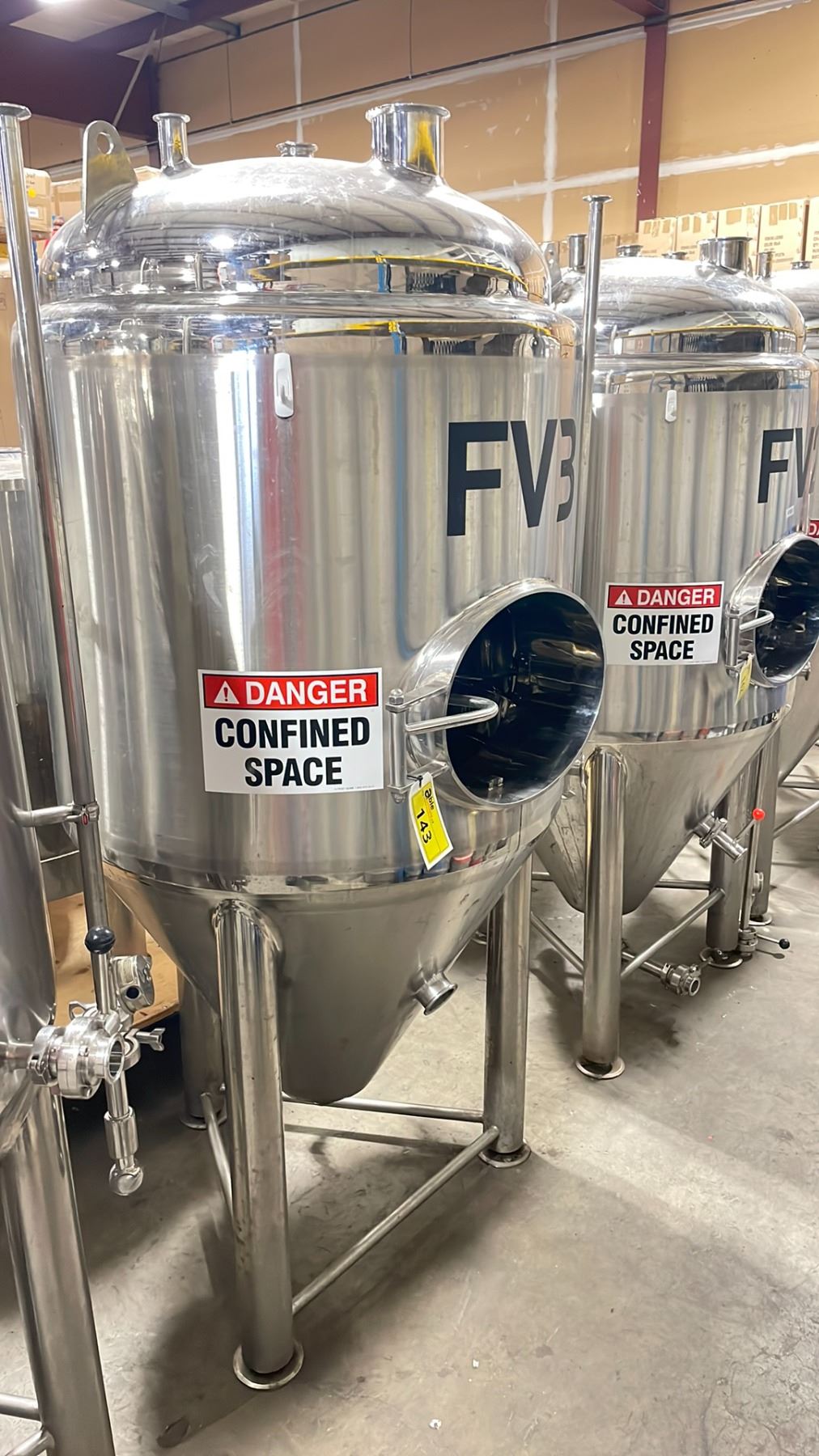 STAINLESS STEEL JACKETED CONE BOTTOM COMMERCIAL BREWERY FERMENTATION TANK W/FRONT ACCESS ON TRI-LEGS