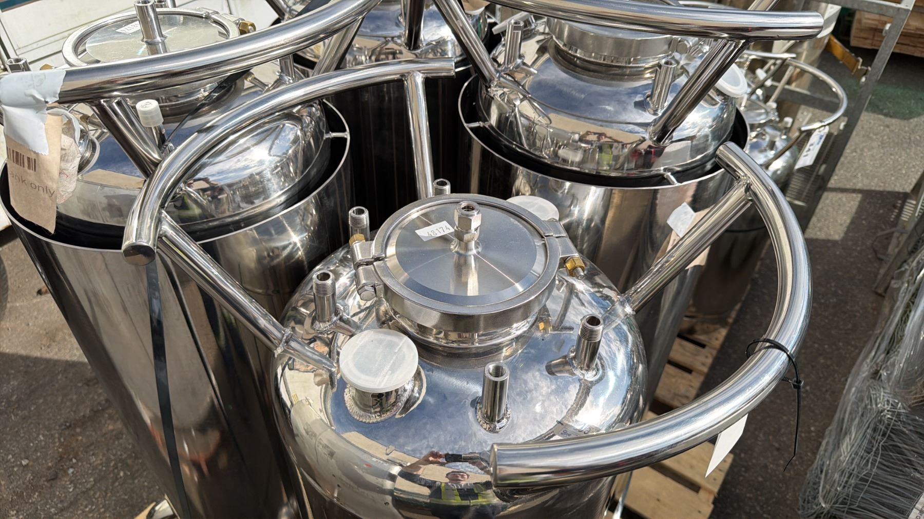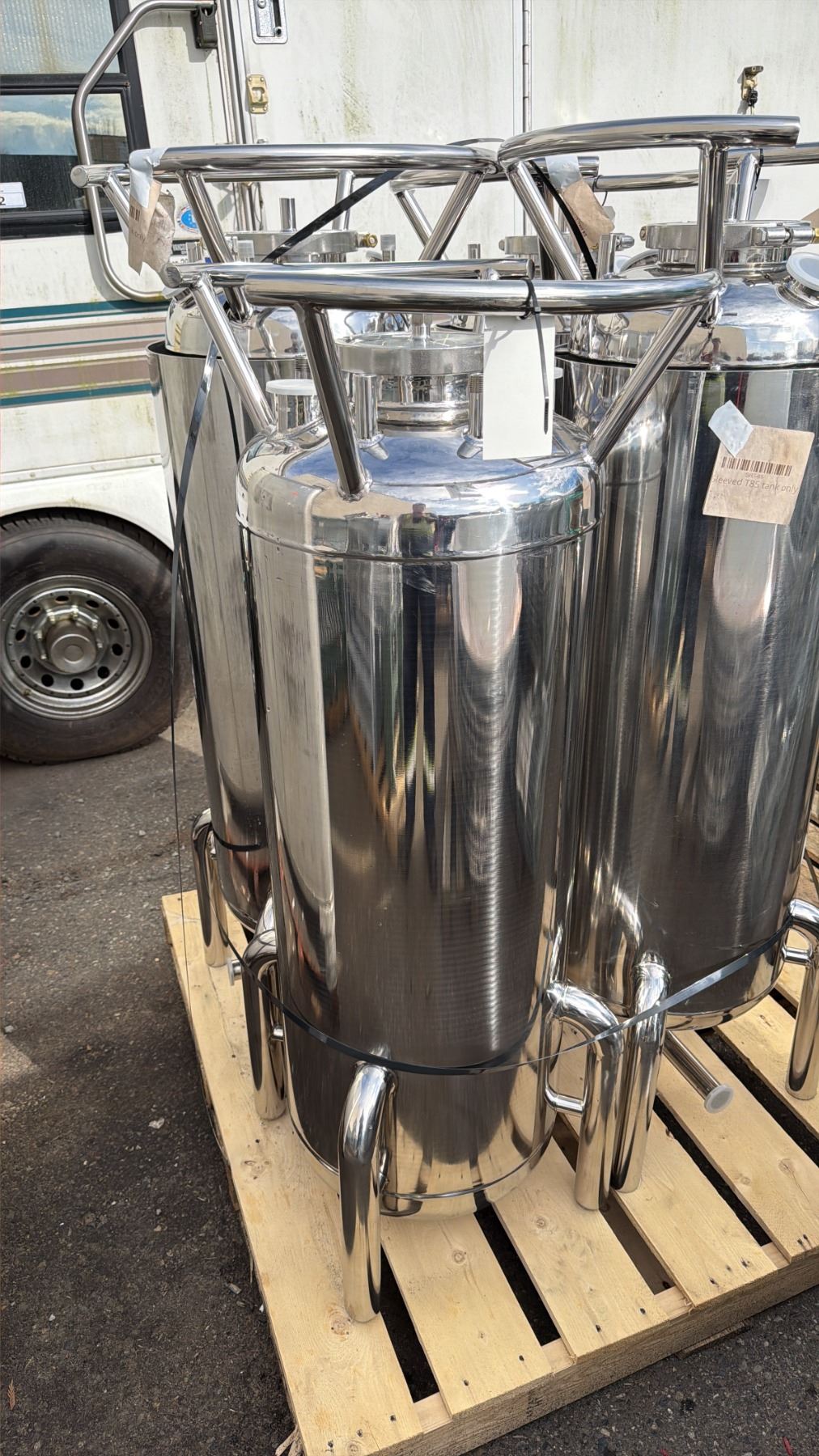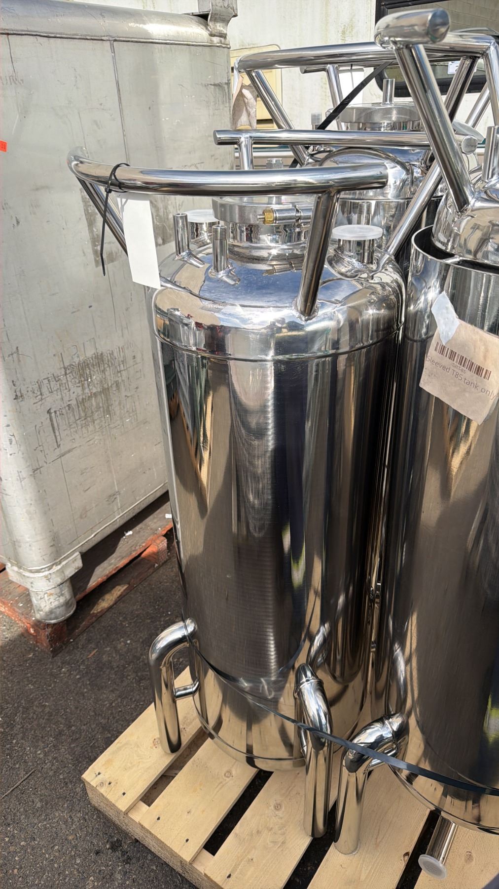 STAINLESS STEEL LABORATORY STORAGE TANK WITH LEGS TANK MEASURES APPROX 16" ACROSS & 51"H