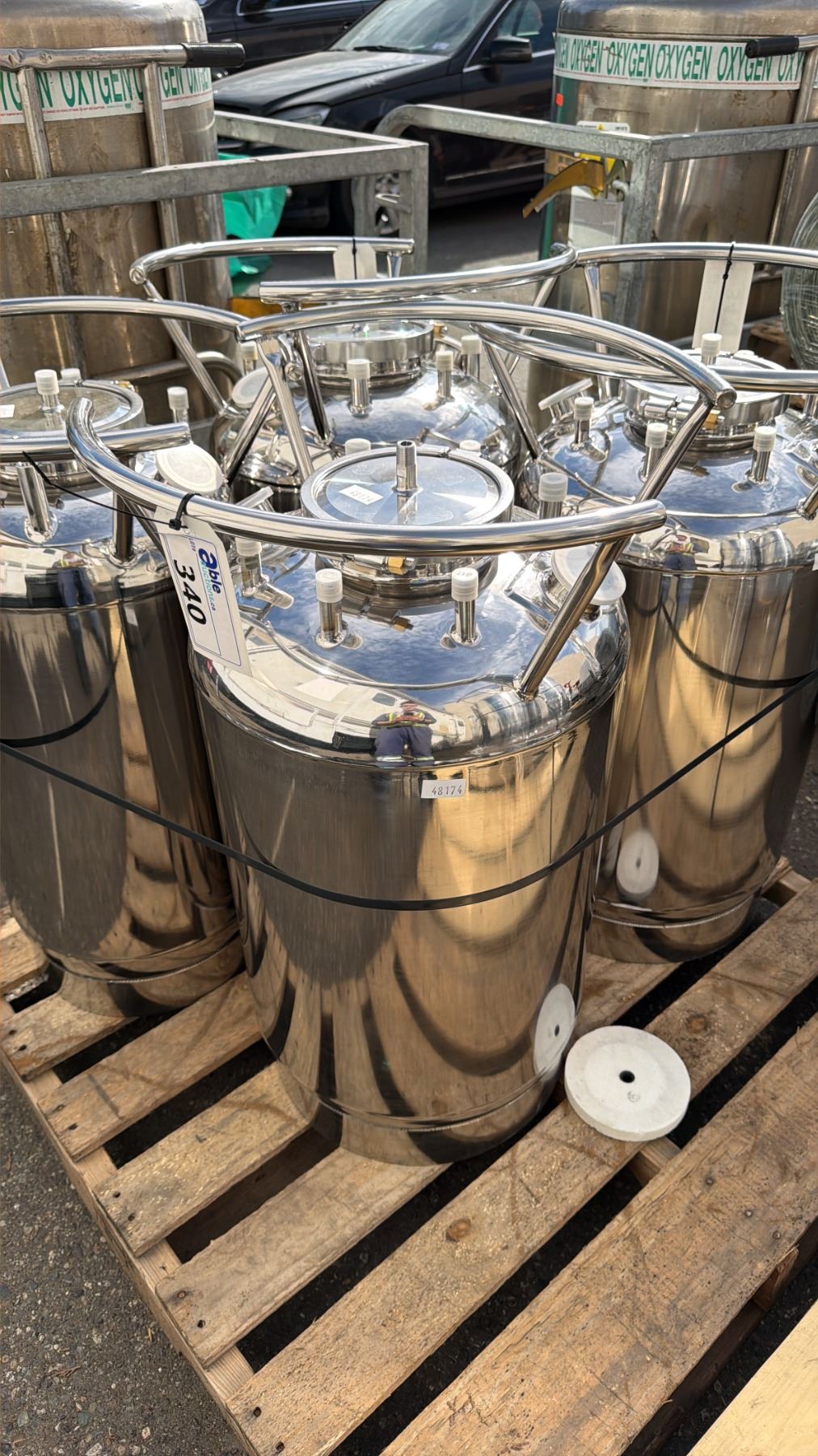 STAINLESS STEEL LABORATORY STORAGE TANK APPROX 15" ACROSS & 33"H