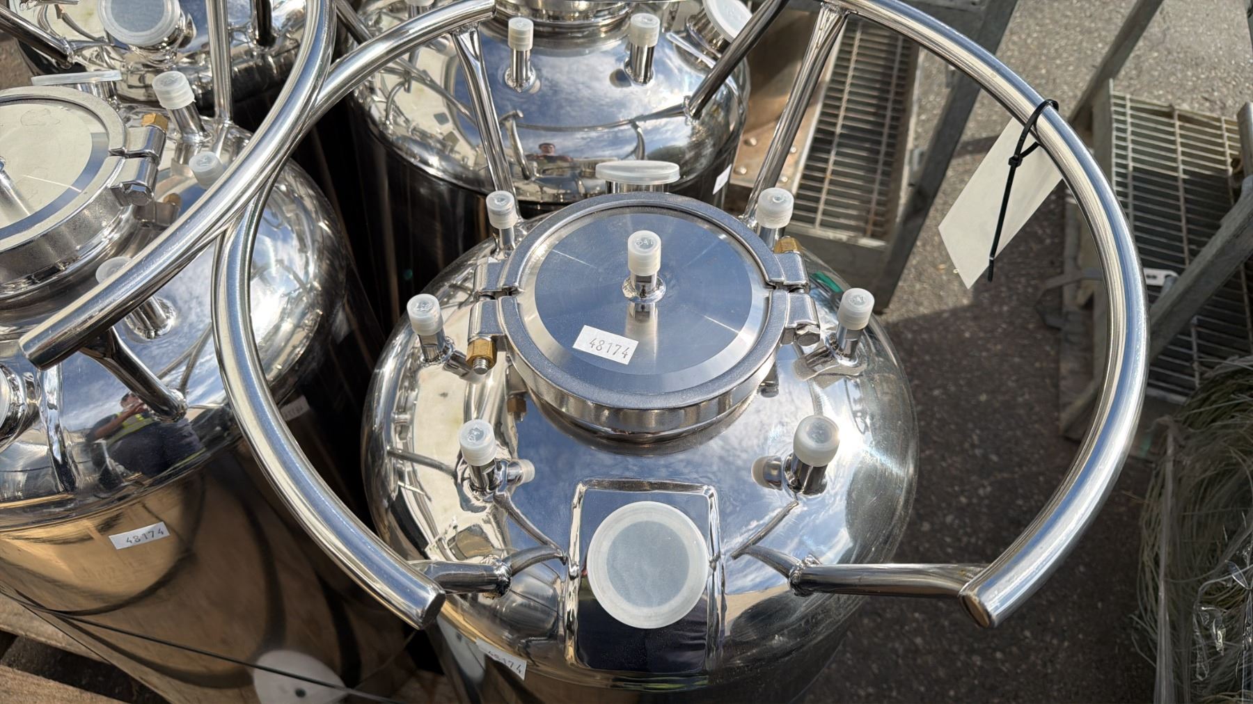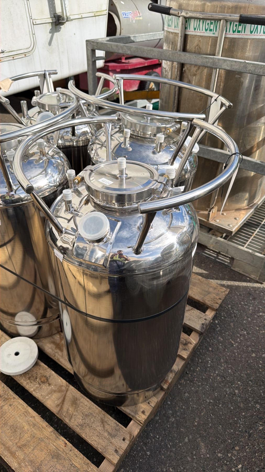 STAINLESS STEEL LABORATORY STORAGE TANK APPROX 15" ACROSS & 33"H