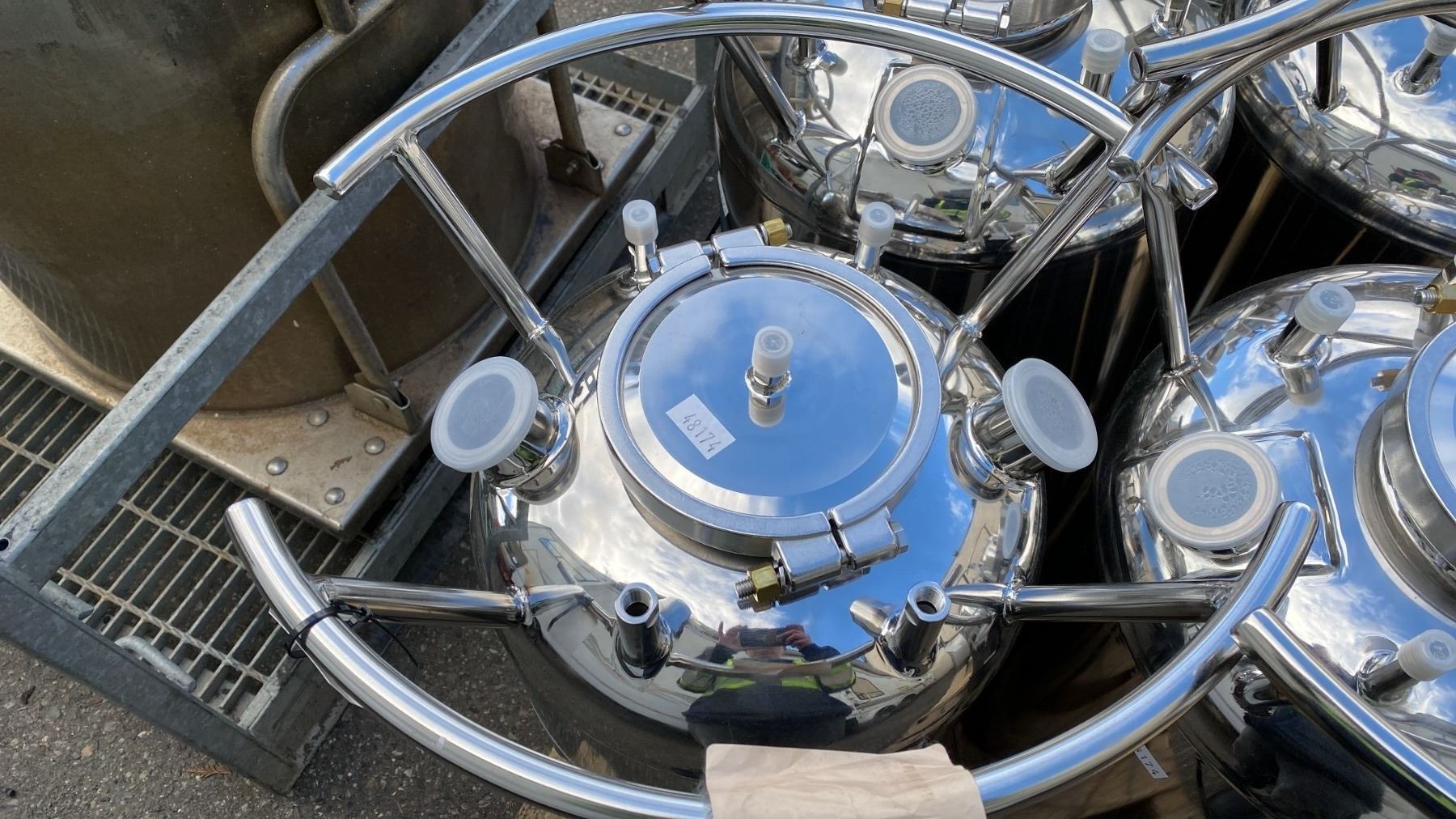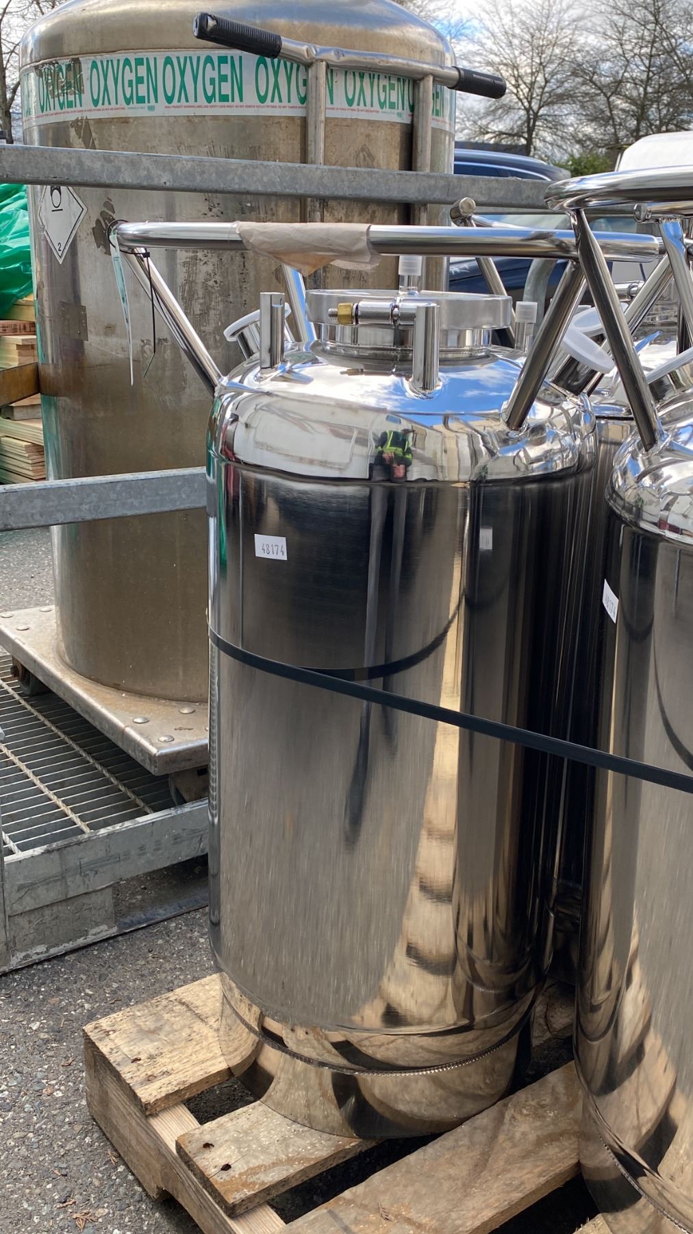 STAINLESS STEEL LABORATORY STORAGE TANK APPROX 13" ACROSS & 33"H