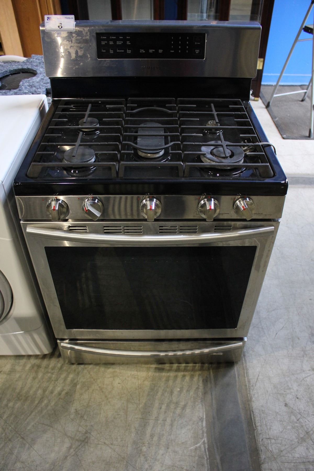 STAINLESS STEEL SAMSUNG GAS-TOP STOVE (MISSING BURNER TOP)