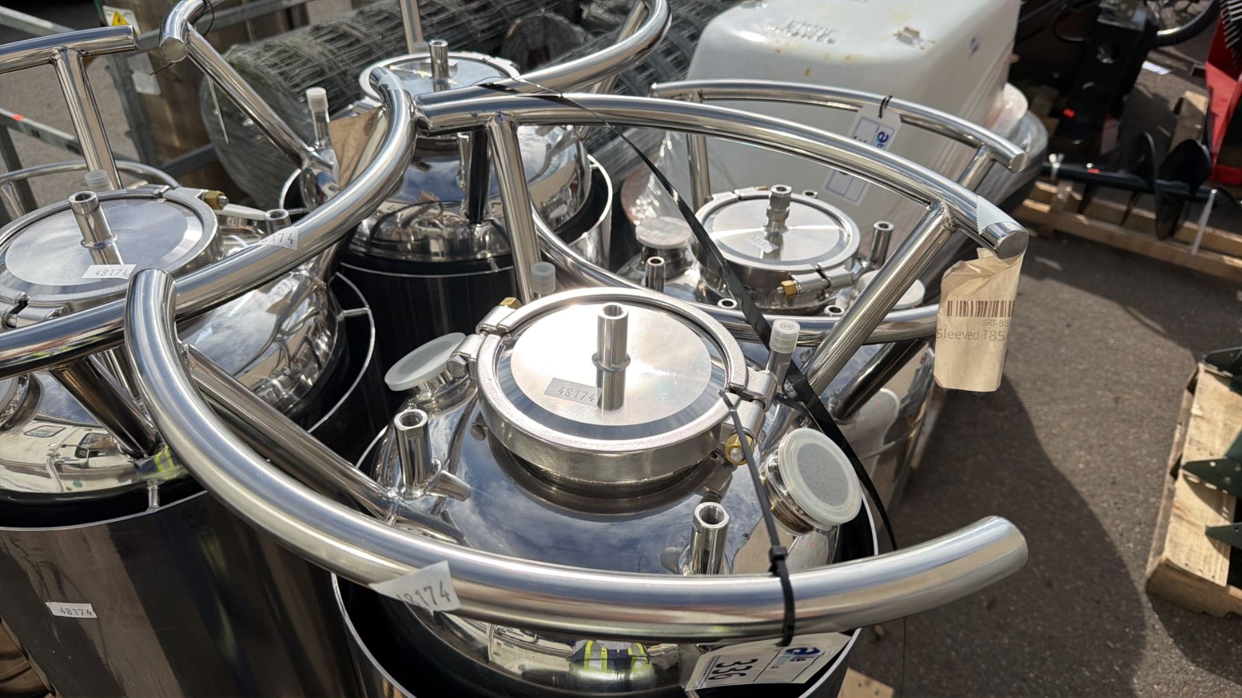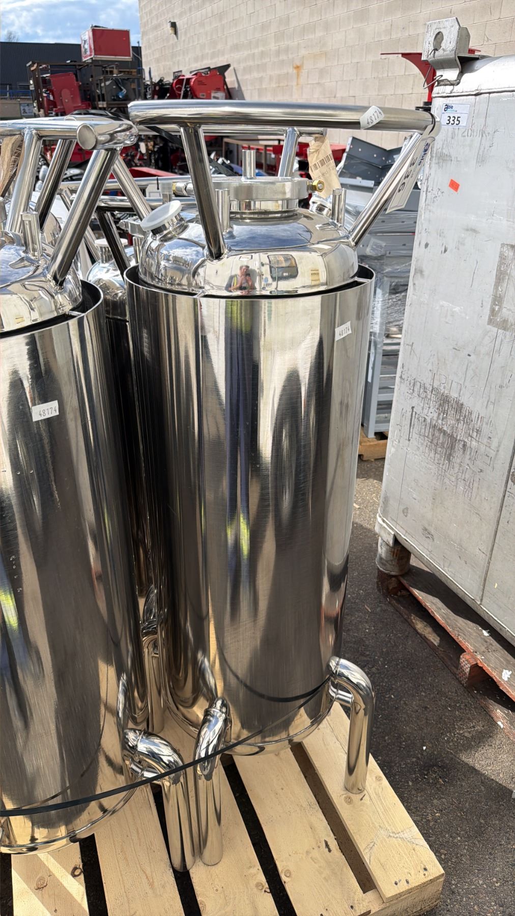 STAINLESS STEEL SLEEVED LABORATORY STORAGE TANK WITH LEGS TANK MEASURES APPROX 16" ACROSS & 55"H