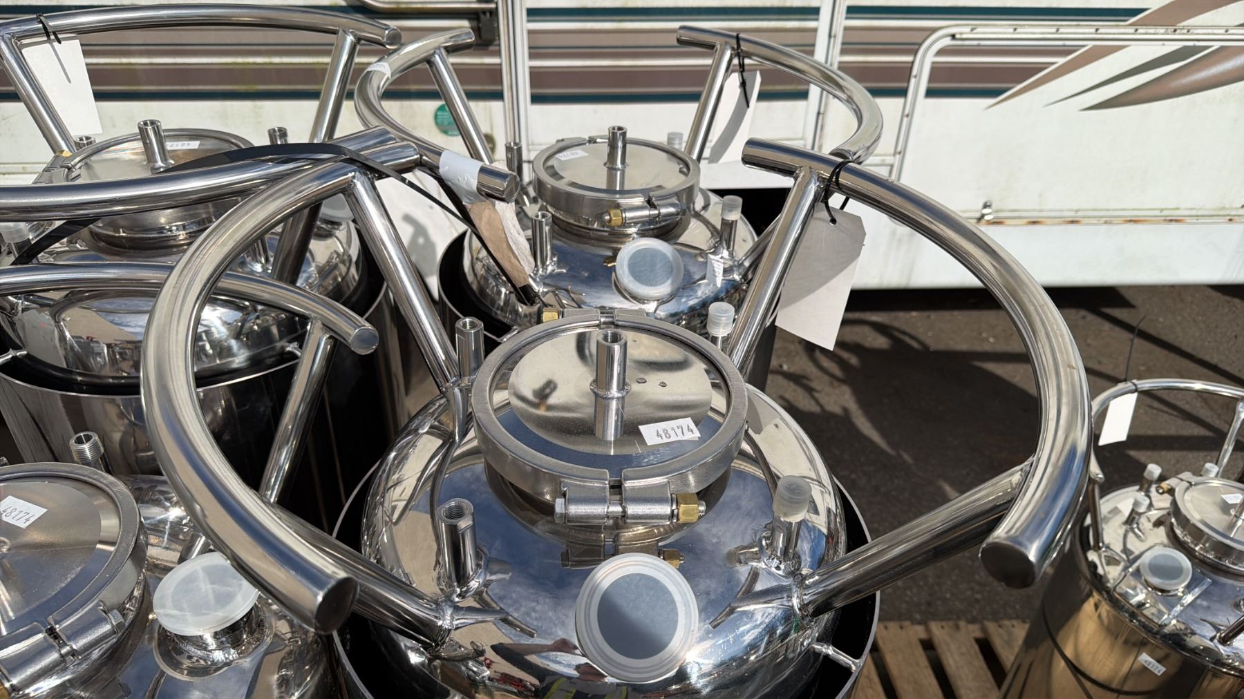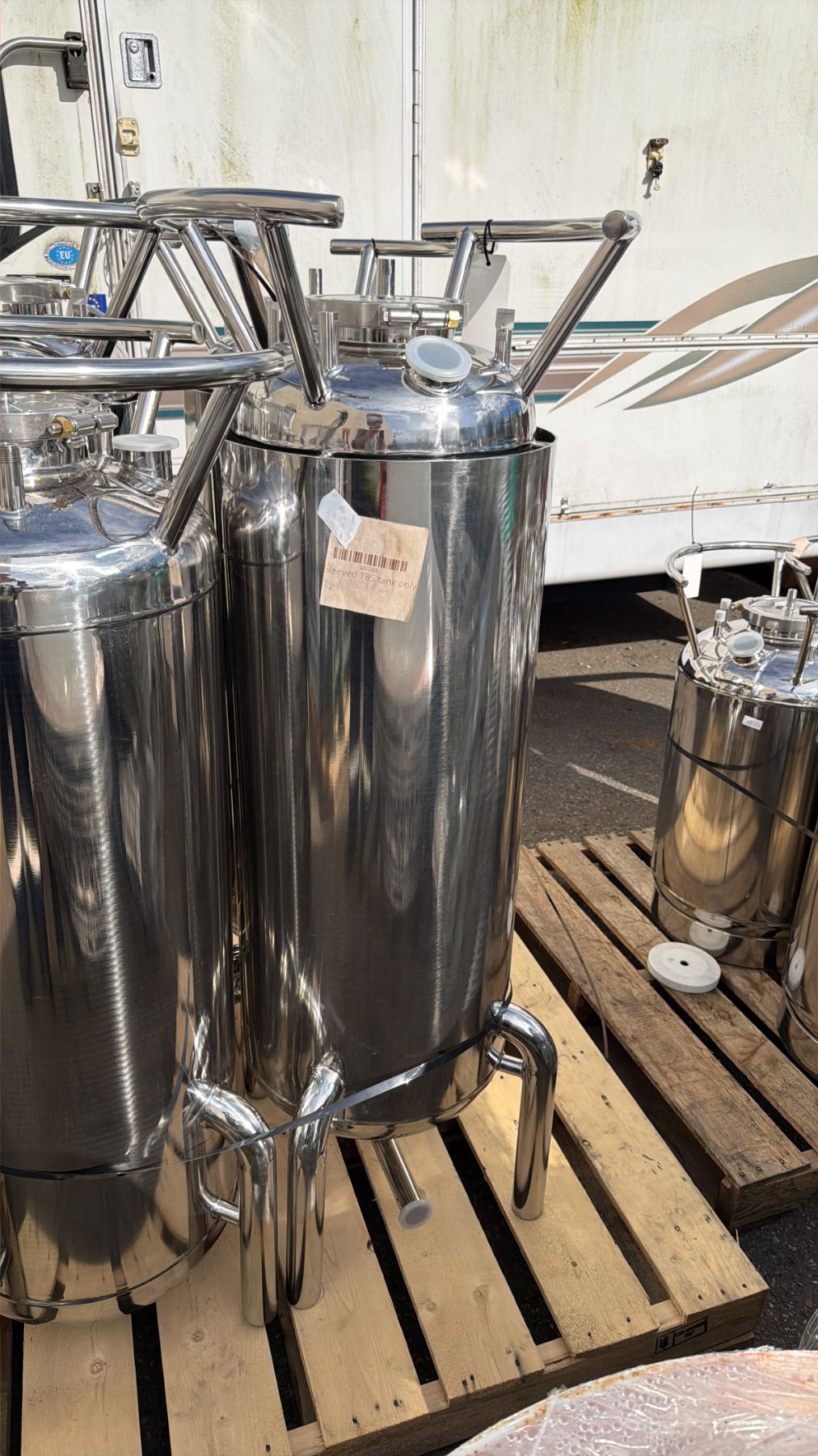 STAINLESS STEEL SLEEVED LABORATORY STORAGE TANK WITH LEGS