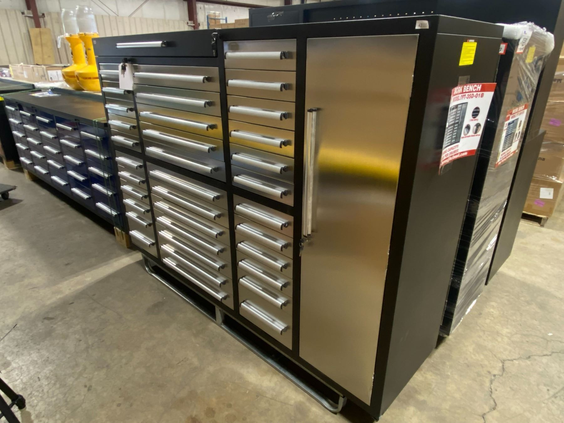 STAINLESS STEEL STEELMAN 35 DRAWER WORK CABINET H57" X W85" X D22 1/2" WITH ANTI-SLIP LINING DRAWERS, KEYS, & THREE RAIL SLIDERS WITH 35KG CAPACITY PER DRAWER