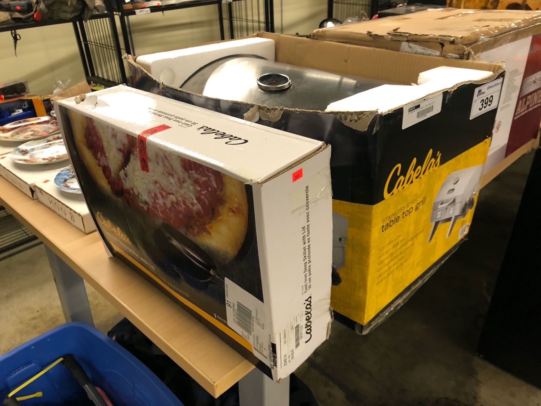 STAINLESS STEEL TABLE TOP GRILL AND CAST IRON DEEP SKILLET