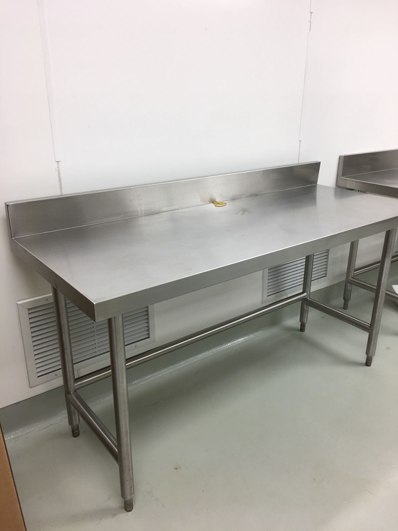 STAINLESS STEEL TABLE WITH BACKSPLASH APPROX 5 X 2 X 2.5
