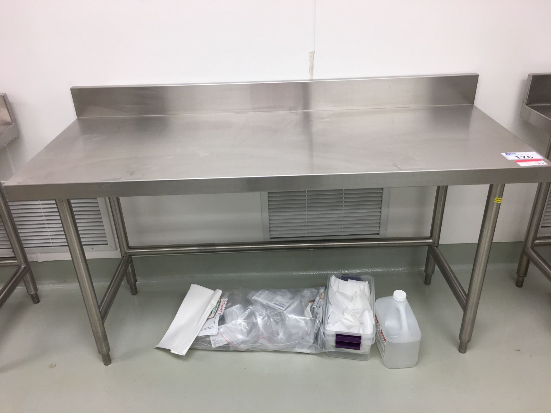 STAINLESS STEEL TABLE WITH BACKSPLASH APPROX 5 X 2 X 2.5