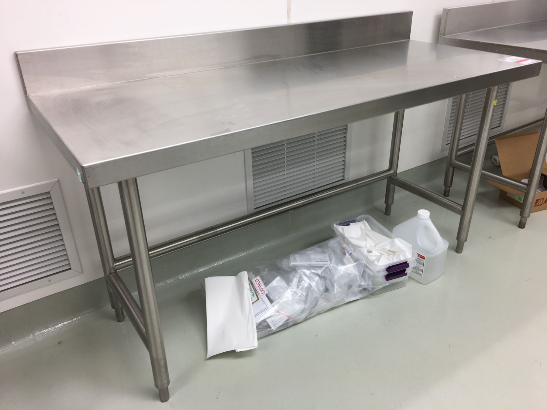 STAINLESS STEEL TABLE WITH BACKSPLASH APPROX 5 X 2 X 2.5"