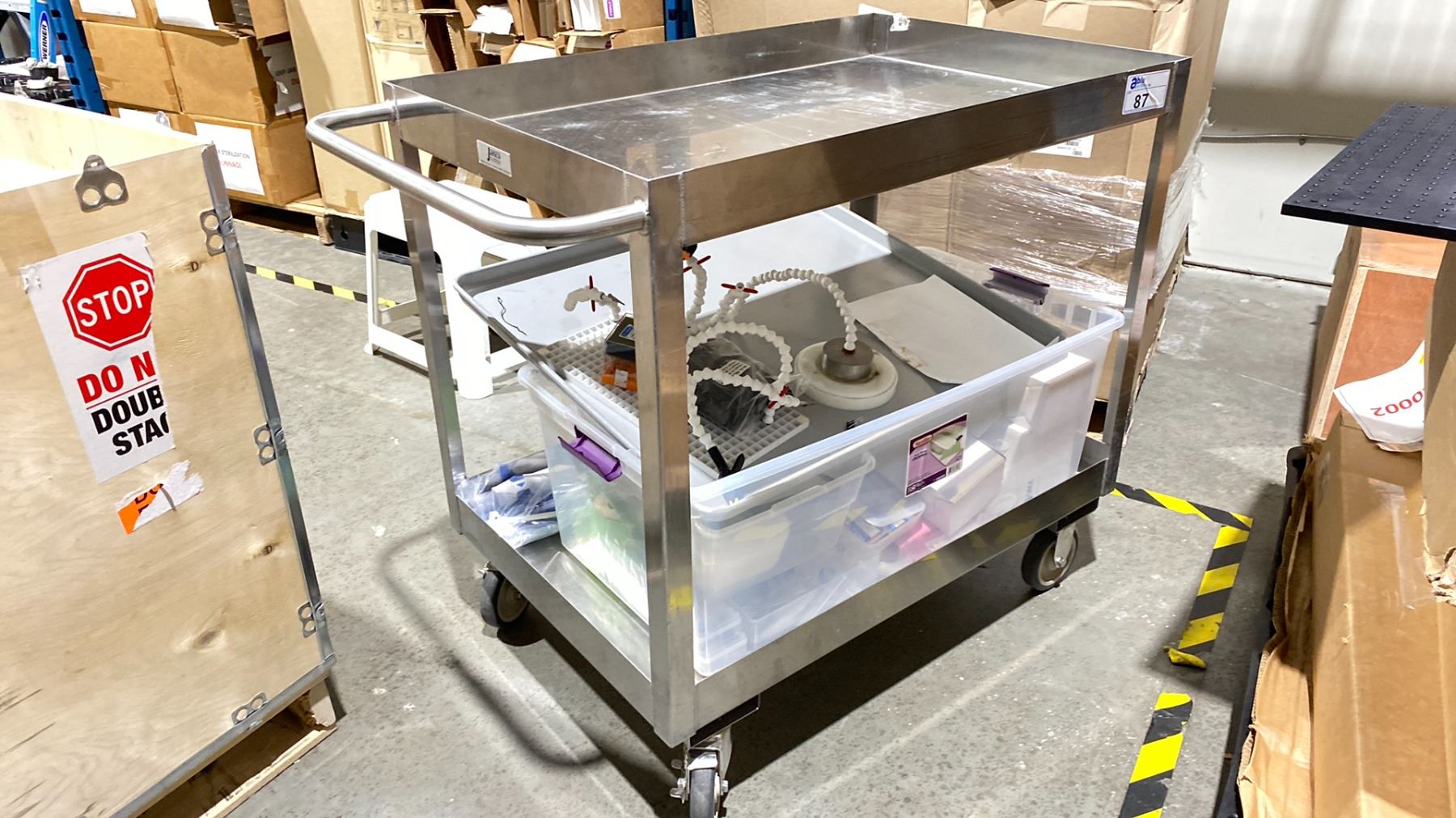 STAINLESS STEEL WELDED 2 TIER ROLLING CART (CONTENTS NOT INCLUDED)