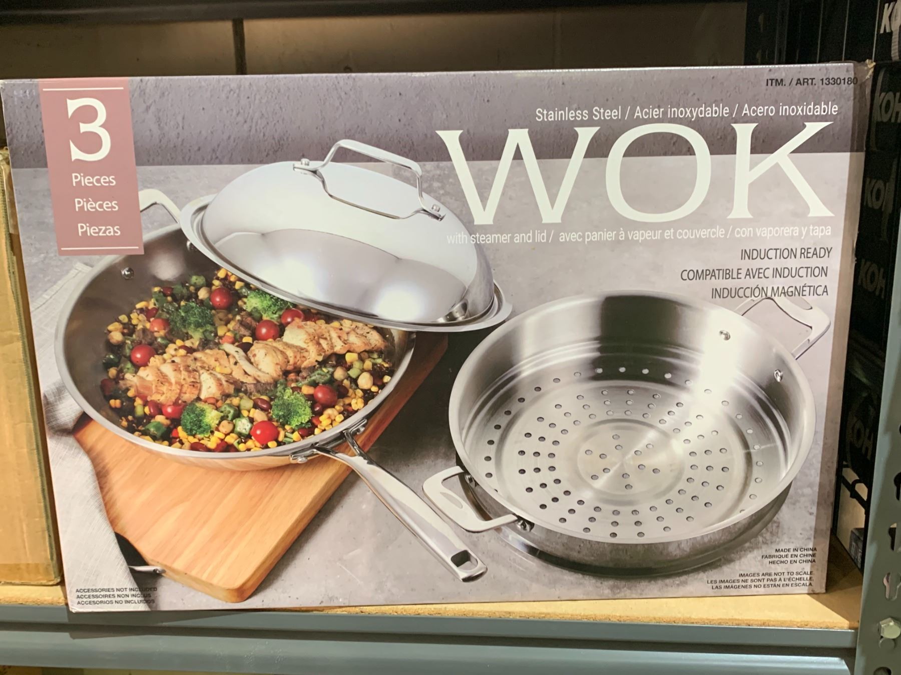 STAINLESS STEEL WOK WITH STEAMER AND LID