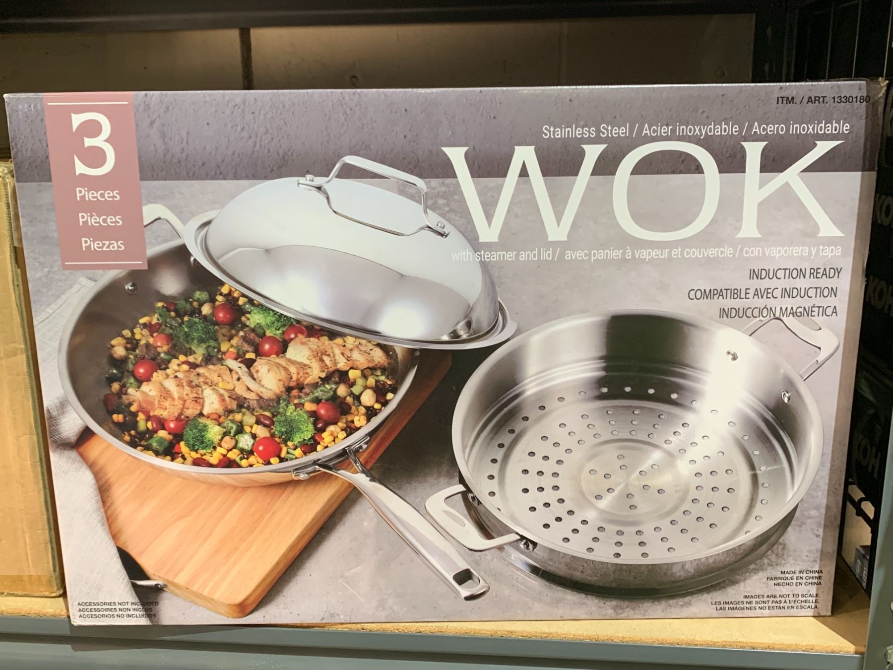 STAINLESS STEEL WOK WITH STEAMER AND LID