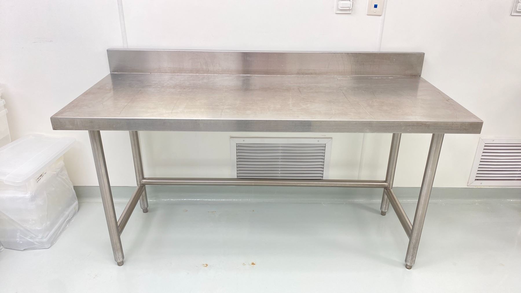 STAINLESS STEEL WORK TABLE WITH BACKSPLASH APPROX 5 X 2 X 2.5'