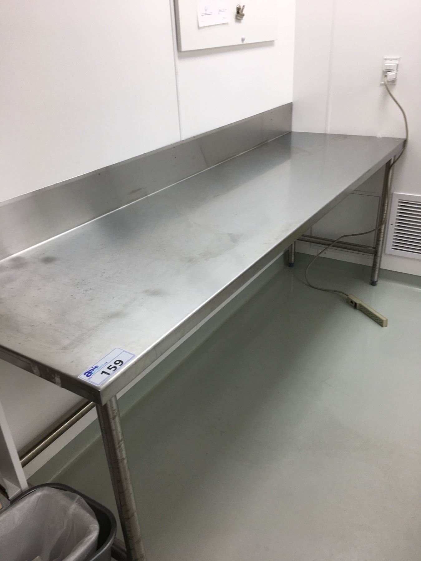 STAINLESS STEEL WORK TABLE WITH BACKSPLASH APPROX 7' LONG 2' HIGH 2' DEEP