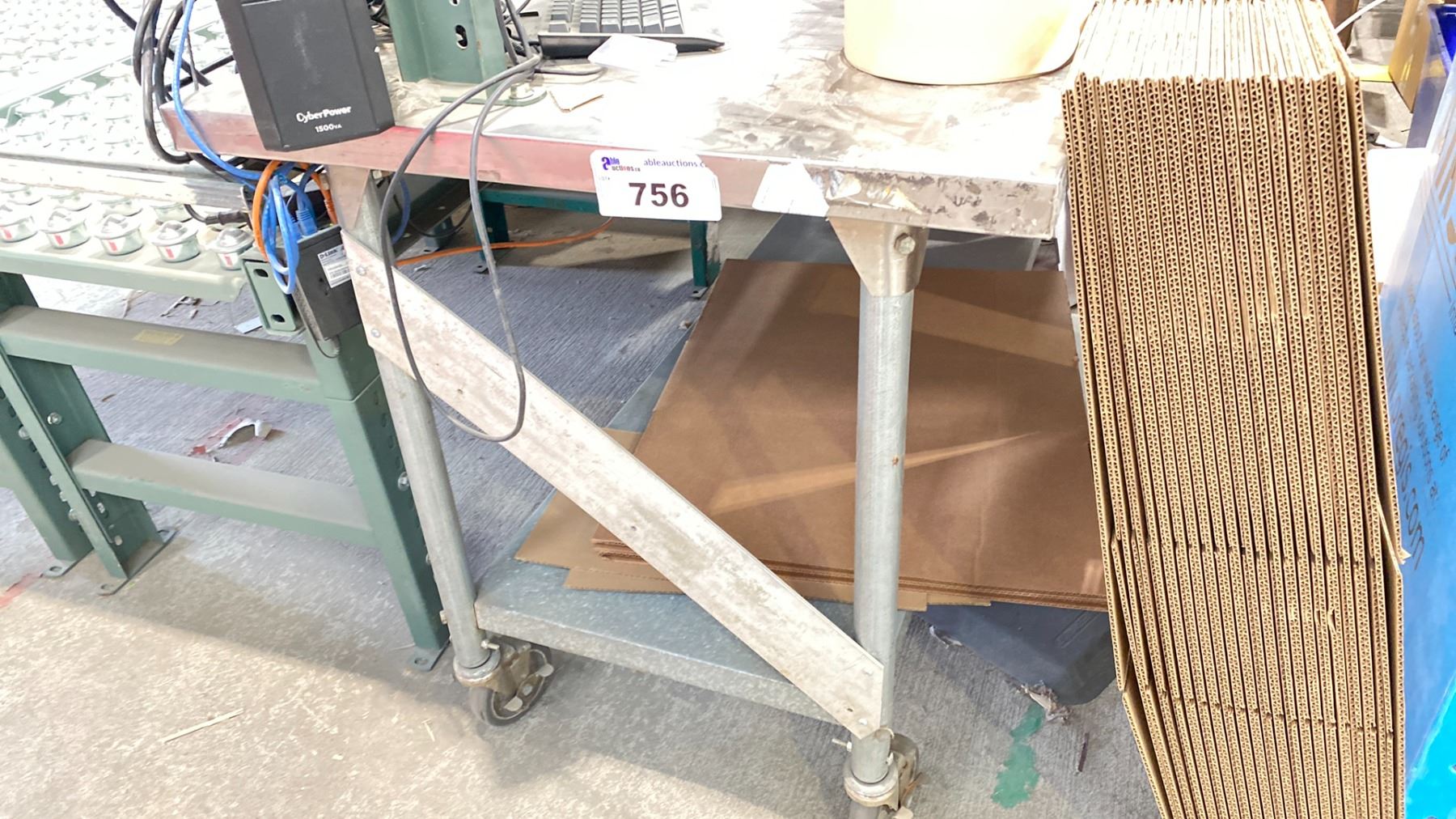STAINLESS WORK BENCH 6' X 30" ON WHEELS WITH OVERHEAD SHELF NO CONTENTS