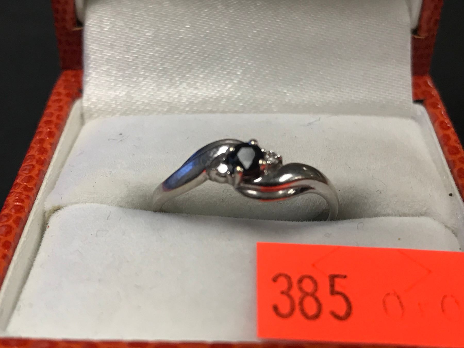 STAMPED 10K BLUE STONE & DIAMOND RING (AUTHENTICITY NOT VERIFIED / POLICE RECOVERY)