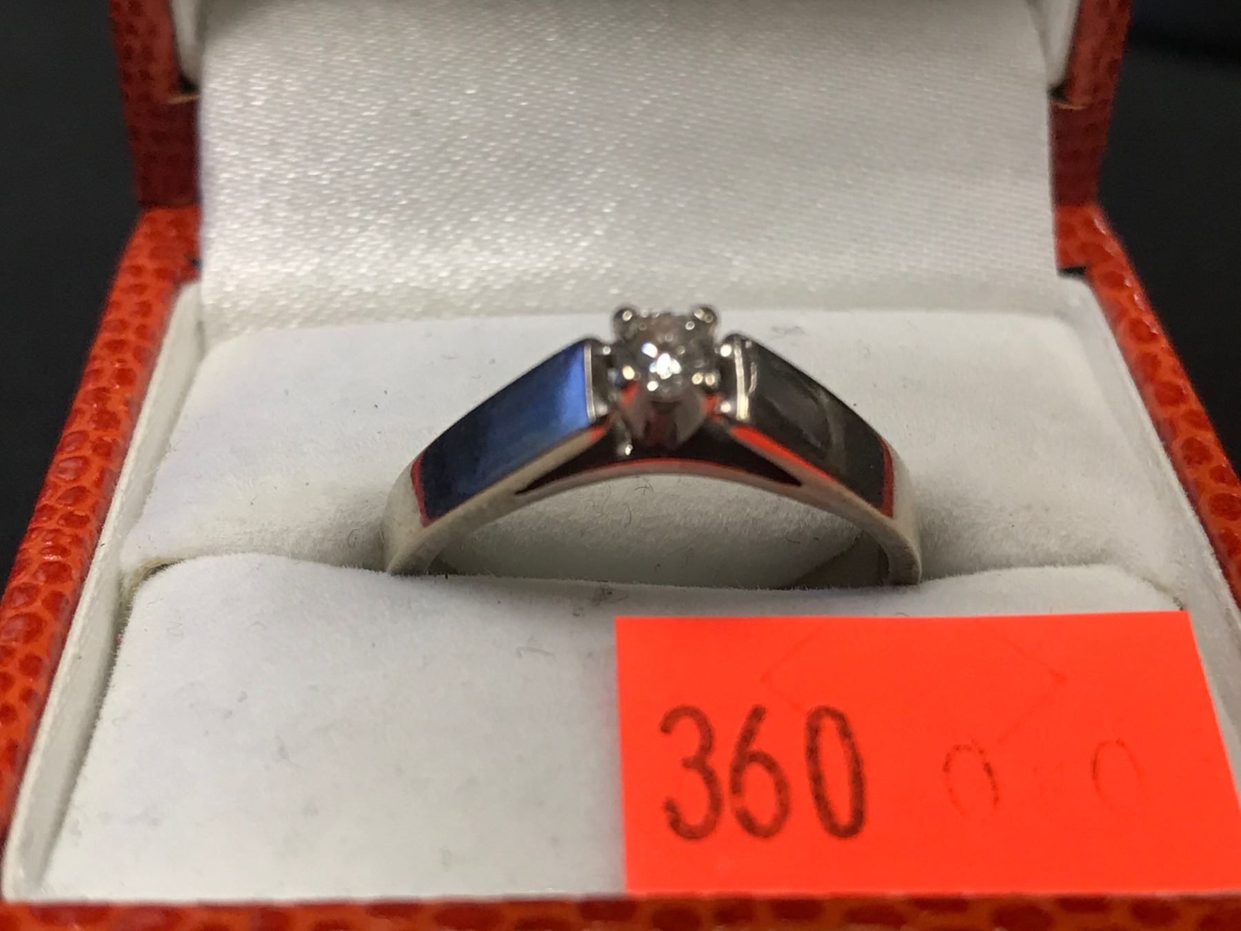 STAMPED 14K DIAMOND SOLITAIRE RING (AUTHENTICITY NOT VERIFIED / POLICE RECOVERY)