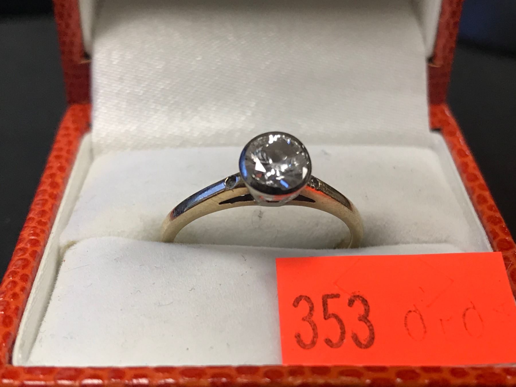 STAMPED 18K DIAMOND SOLITAIRE RING (AUTHENTICITY NOT VERIFIED / POLICE RECOVERY)
