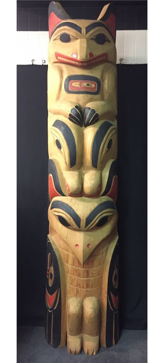 STAN GREENE, TWO FIGURE TOTEM POLE 118" H X 26" W X 16" D