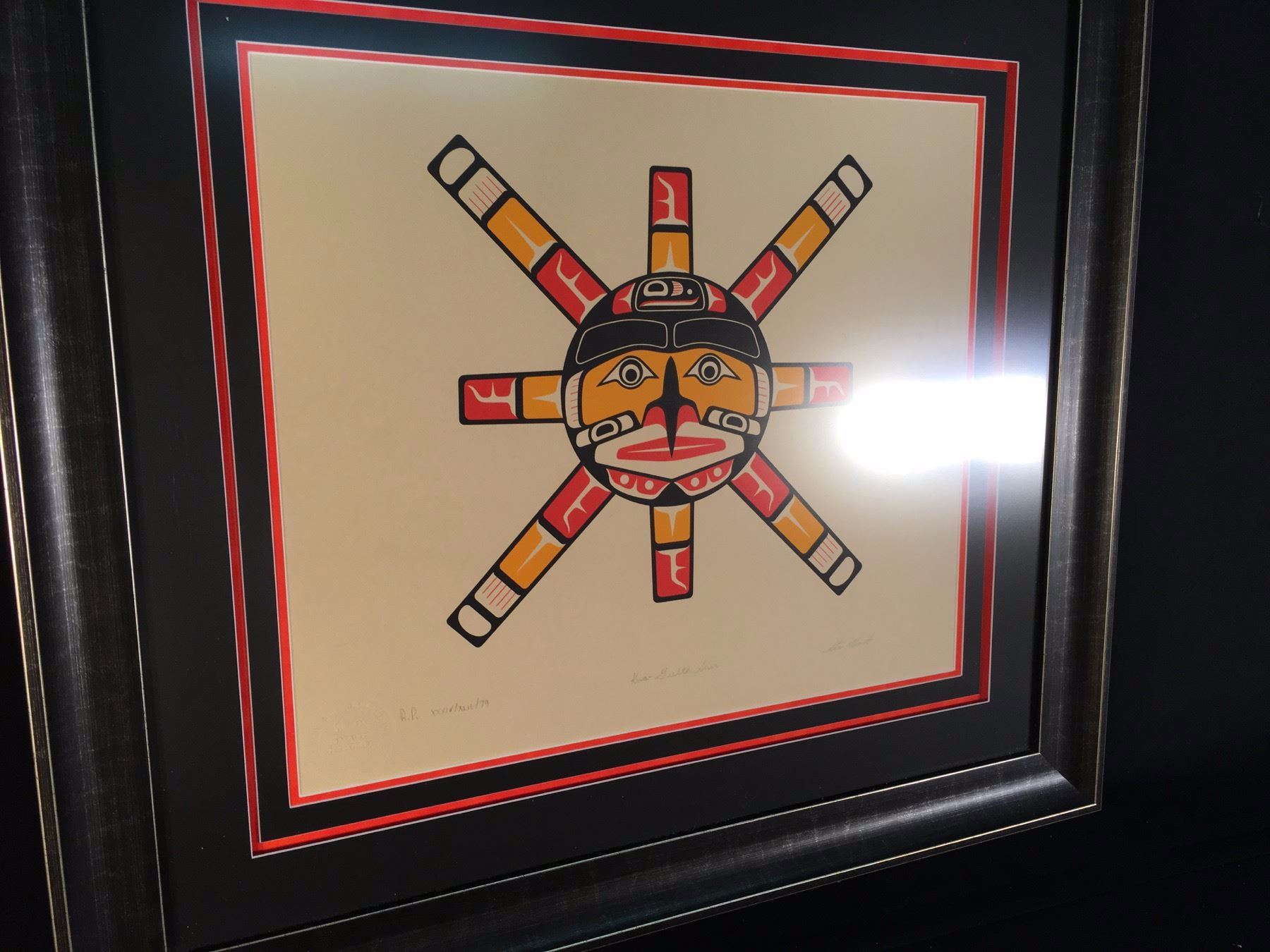 STAN HUNT, OF KWA-GUILTH FIRST NATION, LIMITED EDITION SUN PRINT, 34/42, 1979, 30'' WIDE, 27'' TALL INC. FRAME