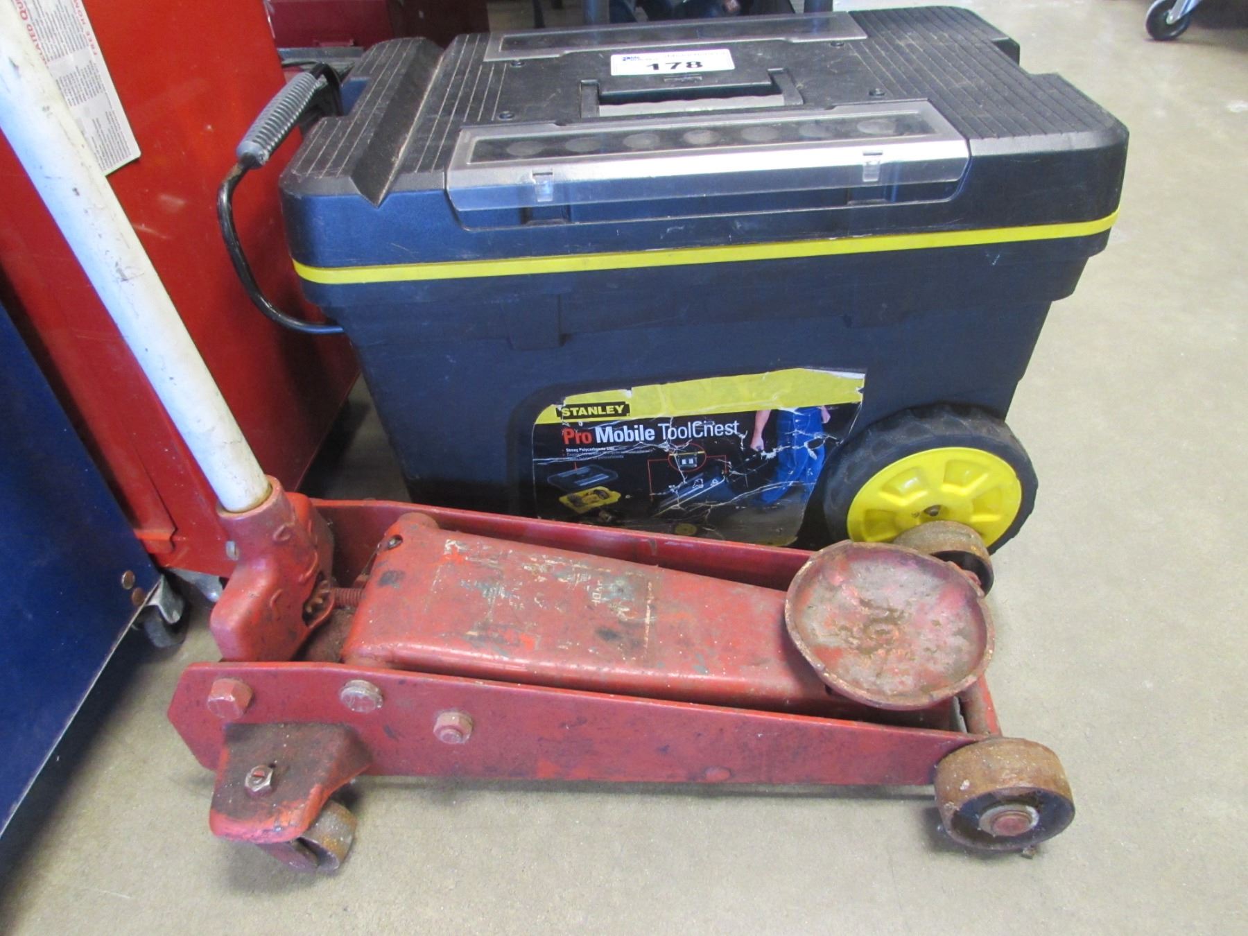 STANLEY PRO MOBILE TOOL CHEST WITH CONTENTS & AUTOMOTIVE JACK