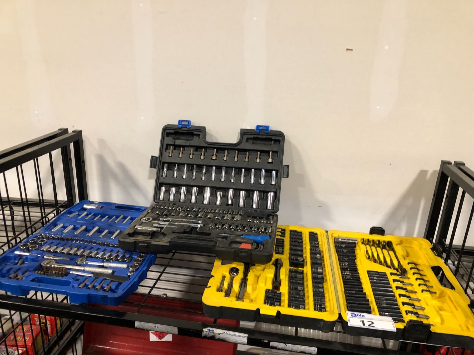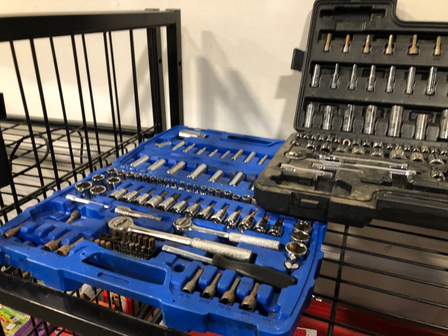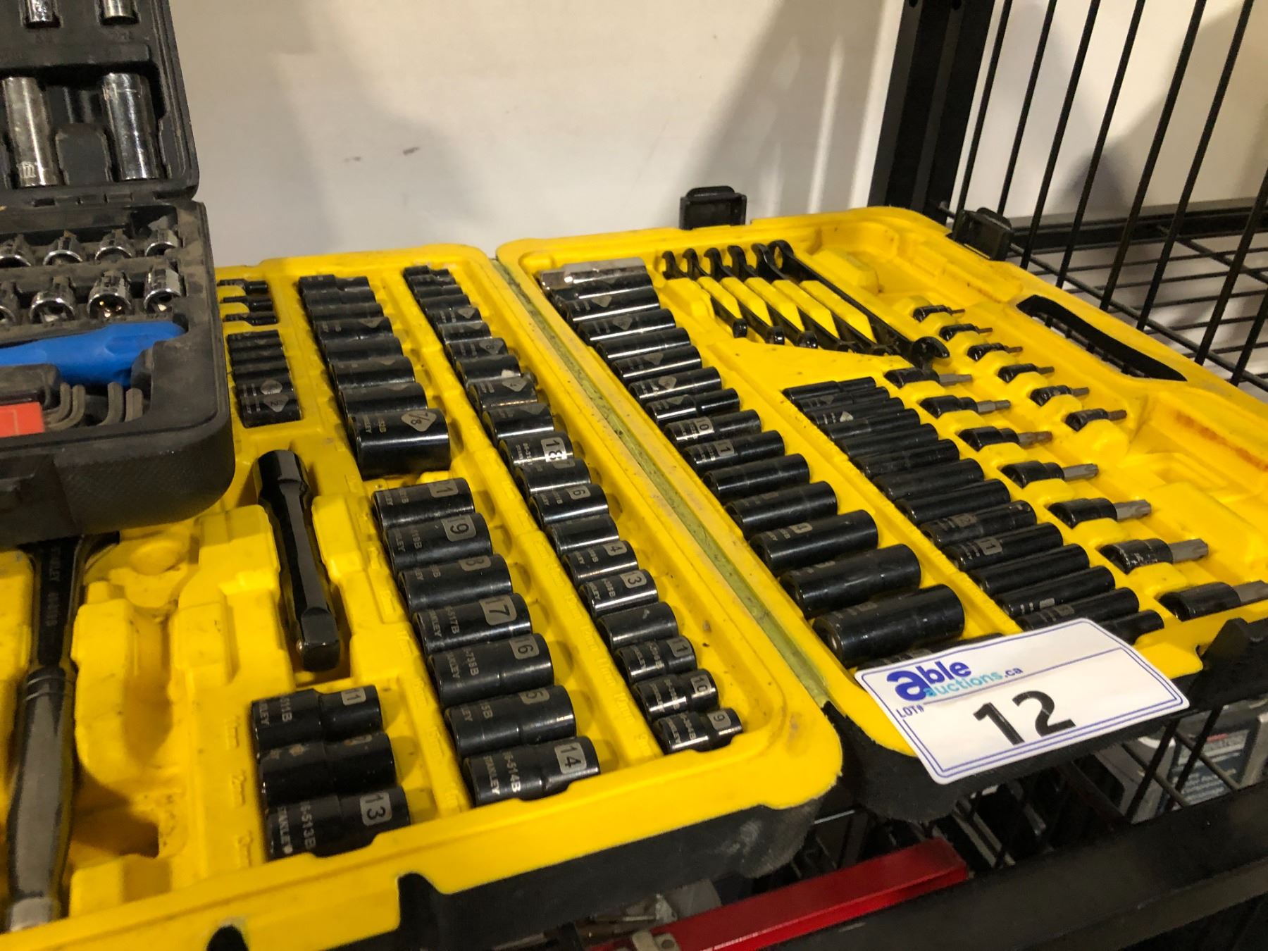 STANLEY PROFESSIONAL GRADE BLACK CHROME SOCKET SET, 183-PC, SAE/METRIC (MISSING RACHET, ALLEN WRENCH, SCREW DRIVER AND SOCKET) AND 2 CASES OF STANDARD SOCKETS AND WRENCH. (CONDITION UNKNOWN)
