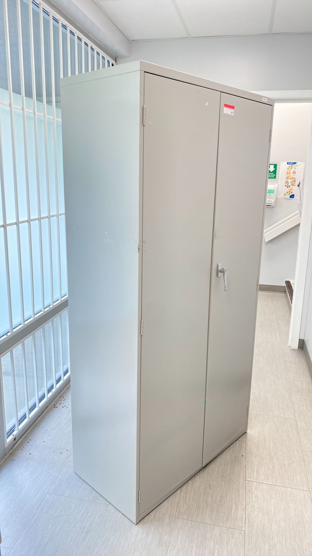 STAPLES METAL STORAGE CABINET APPROX 6' X 1.5' X 3'