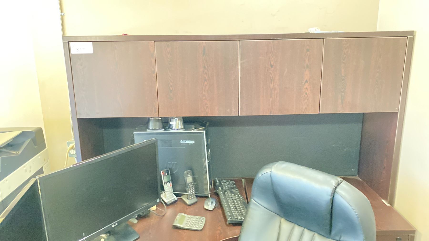 STAPLES MOCHA BROWN OFFICE DESK WITH HUTCH