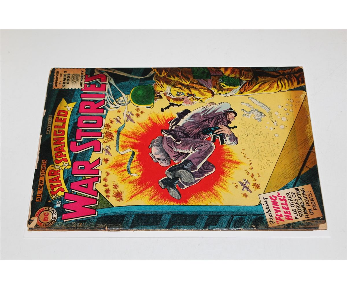 STAR SPANGLED WAR STORIES #45 (1956) KEY ISSUE 1ST DC GREY TONE WAR COVER. THIS TOUGH TO LOCATE ISSUE KICKED OFF DC'S INFAMOUS GREY TONE COVERS. COVER GRADE COPY WITH SOME TAPE ON COVER AND SPINE SPLITTING, COMPLETE & FLAT, PRESENTS NICLEY.